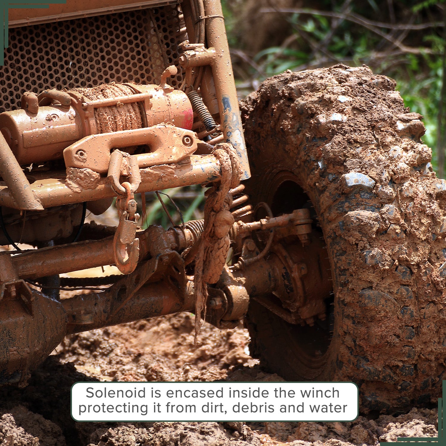 The AlveyTech 12 volt winch solenoid relay for ATVs is compatible with most ATV winch models in the 2000 to 4500 lbs. capacity class with the exception of Hisun brand winches. The solenoid sports four terminals and a 4-wire cable with a 4-pin male connector. The bolts and other mounting hardware is included.