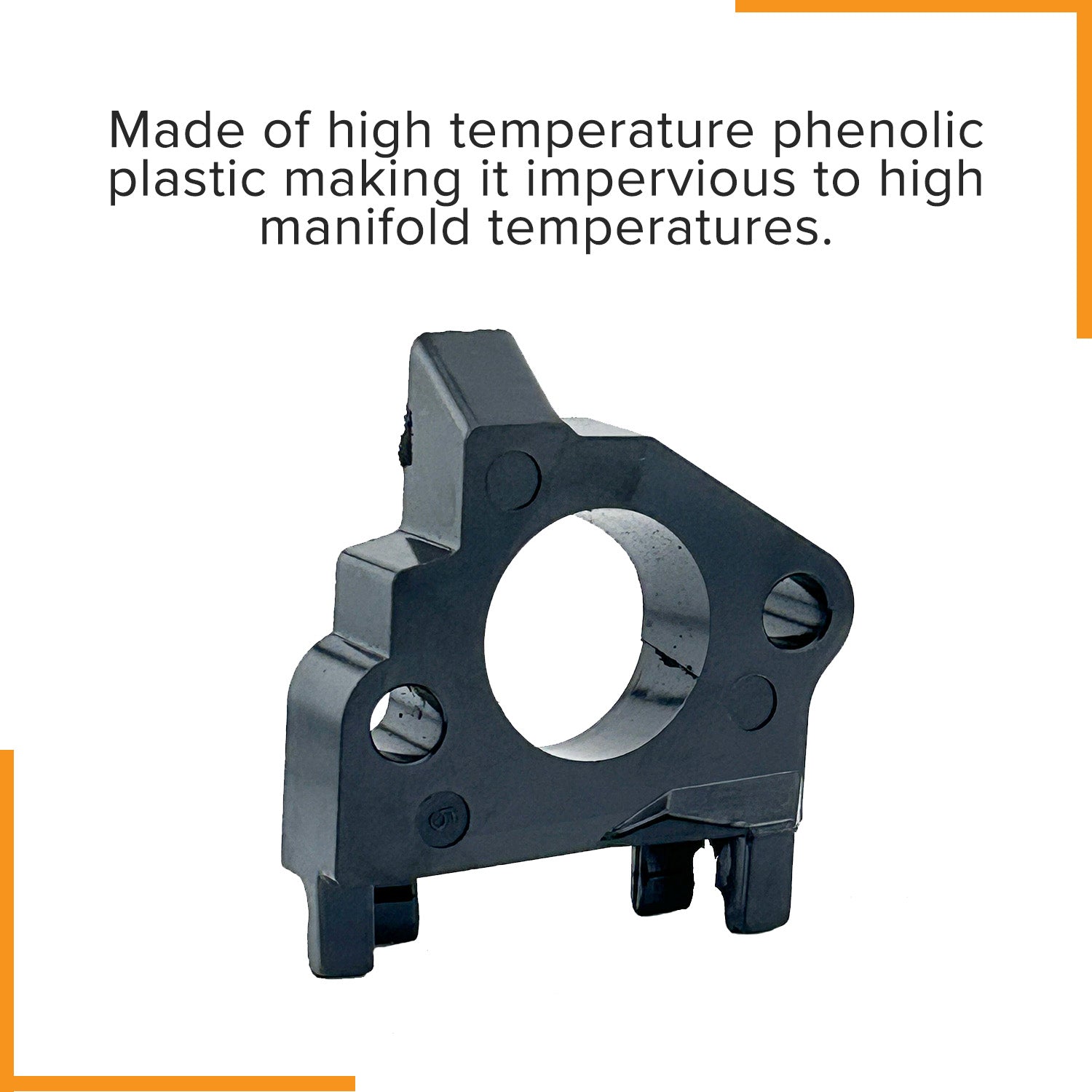 The spacer/insulator is made of high-temperature phenolic plastic and is impervious to high manifold temperatures. This insulates and reduces the heat flowing into the carburetor to both keep it cooler and to allow a denser fuel mixture that produces more horsepower.