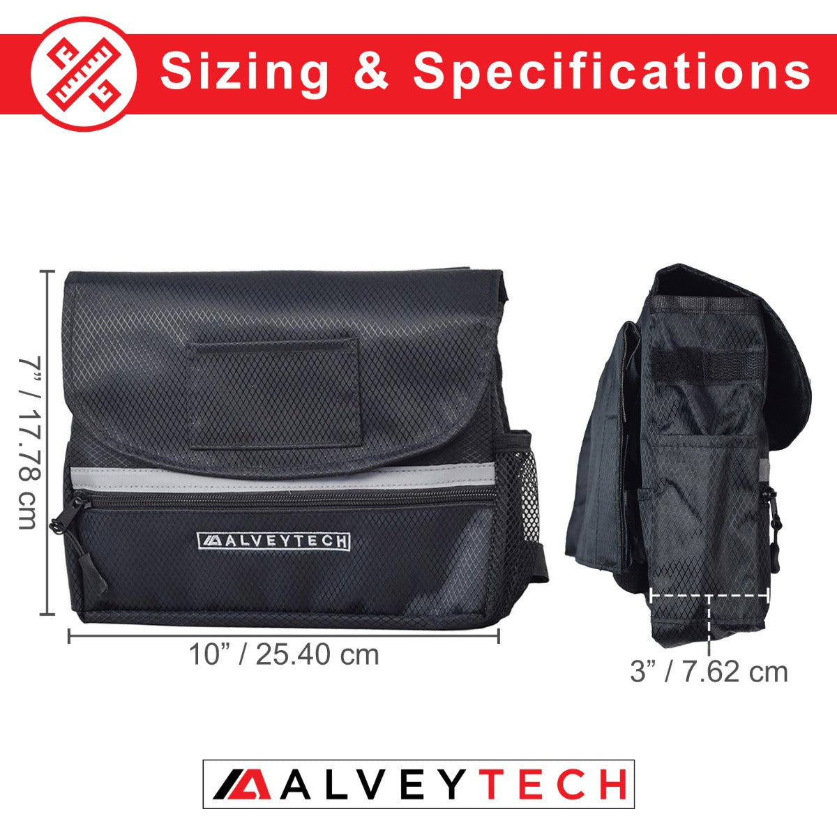 The AlveyTech saddle bag is the perfect place to store replacement keys, books, your owner's manual, or anything else you might need while riding. The top pouch is securely closed by a Velcro fastener and the extra pouches have zipper closings. It also sports an applied reflective safety tape for enhanced visibility under low light conditions.