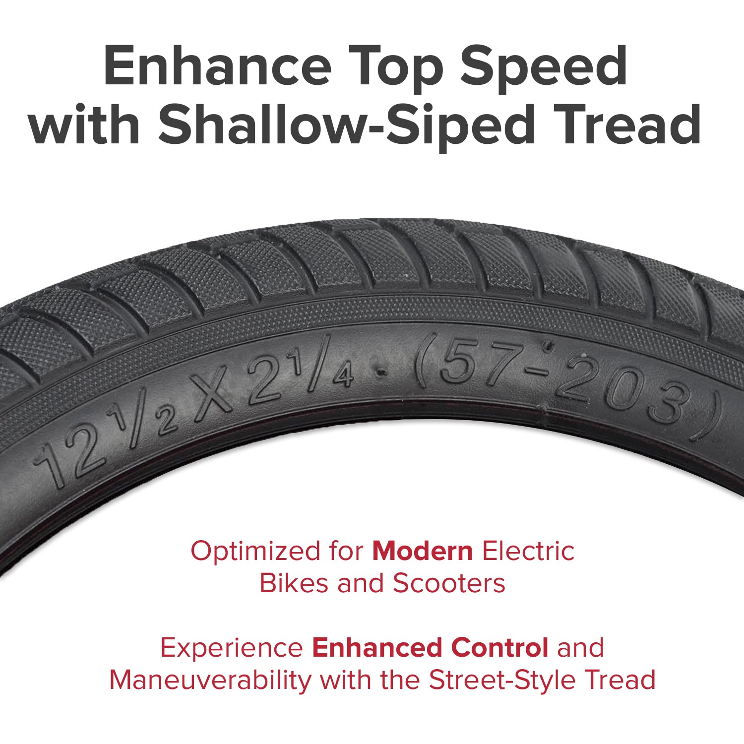 12-1/2"x2-1/4" Tire with Street Tread for Electric Bikes & Scooters