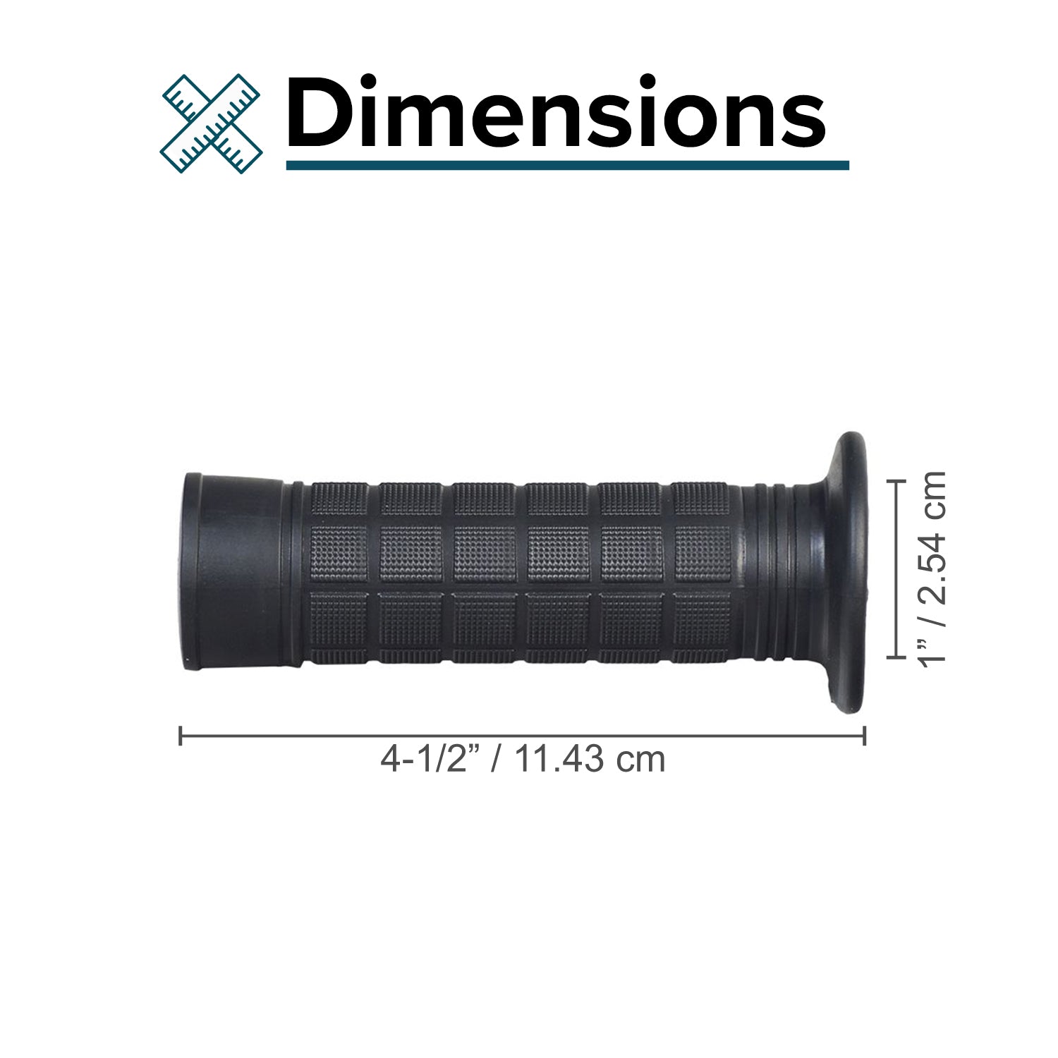Need a left handlebar grip for all versions of the Baja Doodle Bug mini bike, including the Baja Blitz, Baja Dirt Bug, and the Baja Racer? This is really a very fine handlebar grip, even for such applications like kick scooters. The flanged and textured surface makes it a real "grabber" for the non-throttle side of your bar.