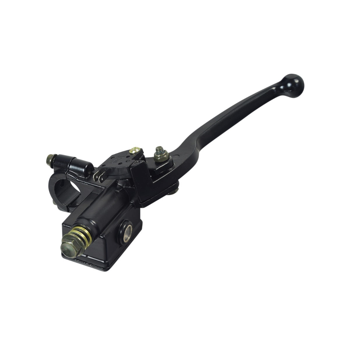 Monster Scooter Parts offers a great price on the complete front right side brake lever and master cylinder assembly for QMB139 scooters. Our right side master brake cylinder will work on many modern scooter models using the popular QMB139 GY6 engine, and includes a black lever and master cylinder. This brake lever / master cylinder assembly includes a 2-pin brake light circuit.