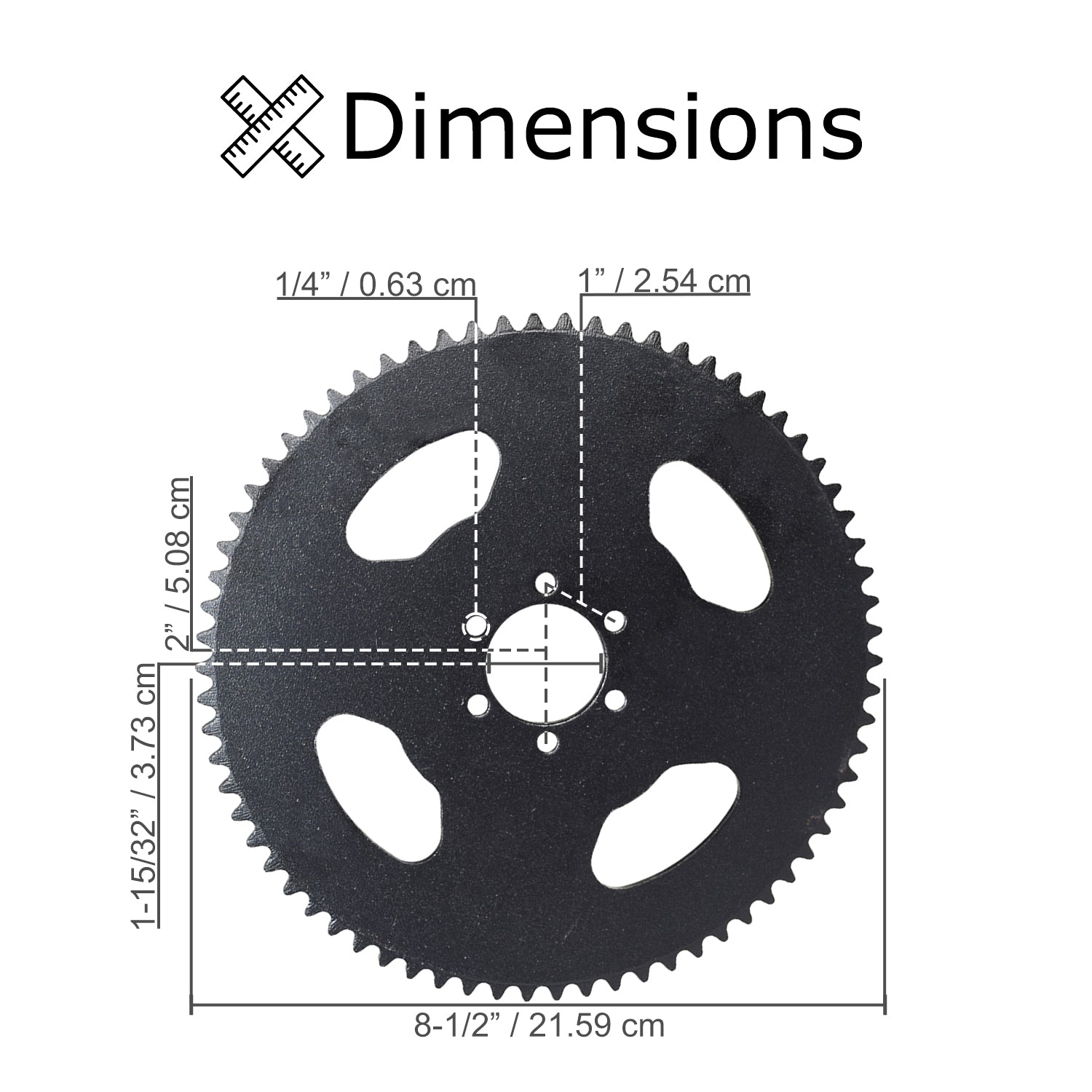 The 70 tooth #35 chain rear sprocket for Baja Doodle Bug (DB30) mini bike is ready to mount on your Bug. Any version of Baja's Doodle Bug can use this sprocket, and it may be retrofit on a number of other applications using the #35 size motorsports chain. Please see specification tab for the exact dimensions.