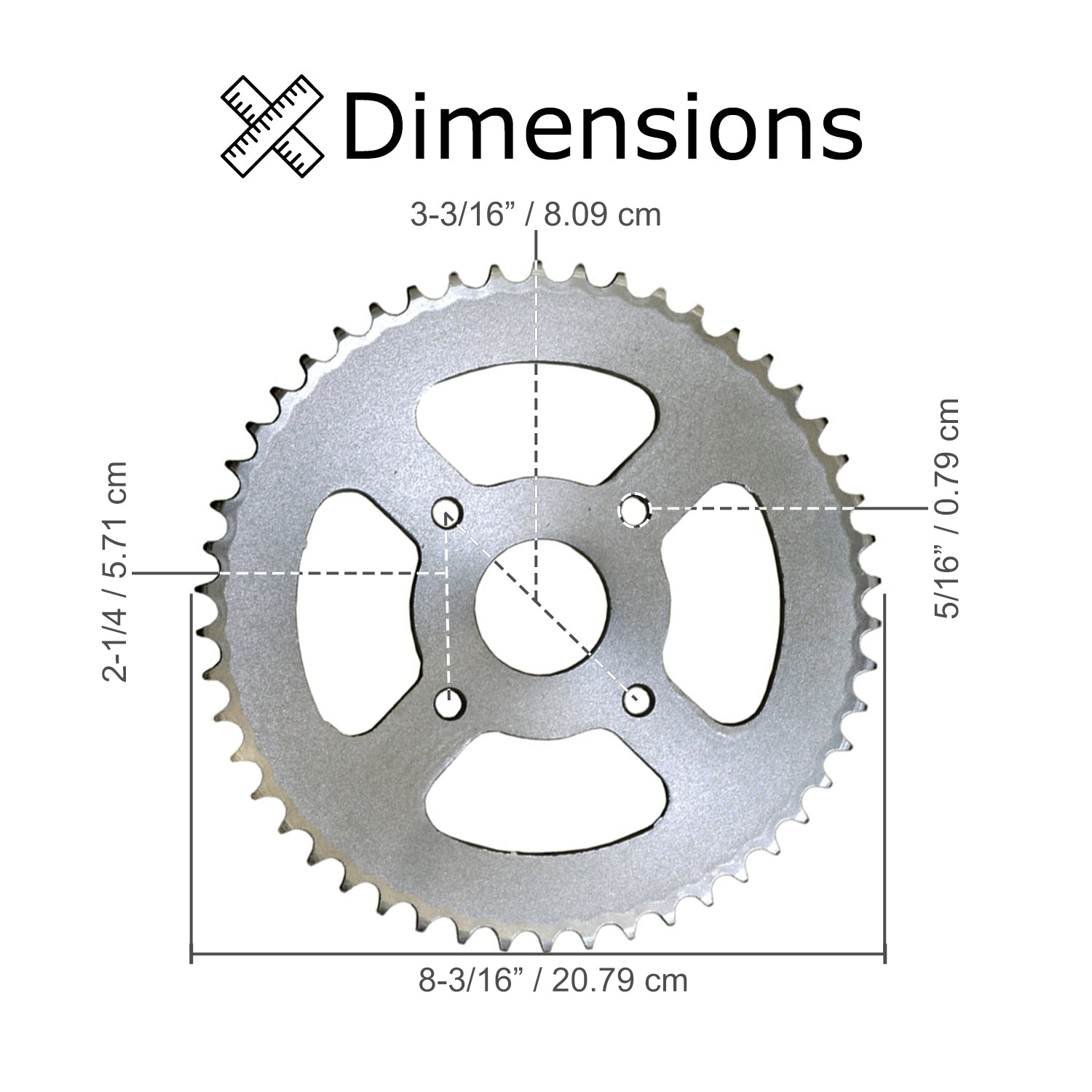In addition to the Baja MB165 and MB200 mini bikes, this 50-tooth sprocket is the exact same component that Coleman uses on their BT200X series and CT200U mini bike models.