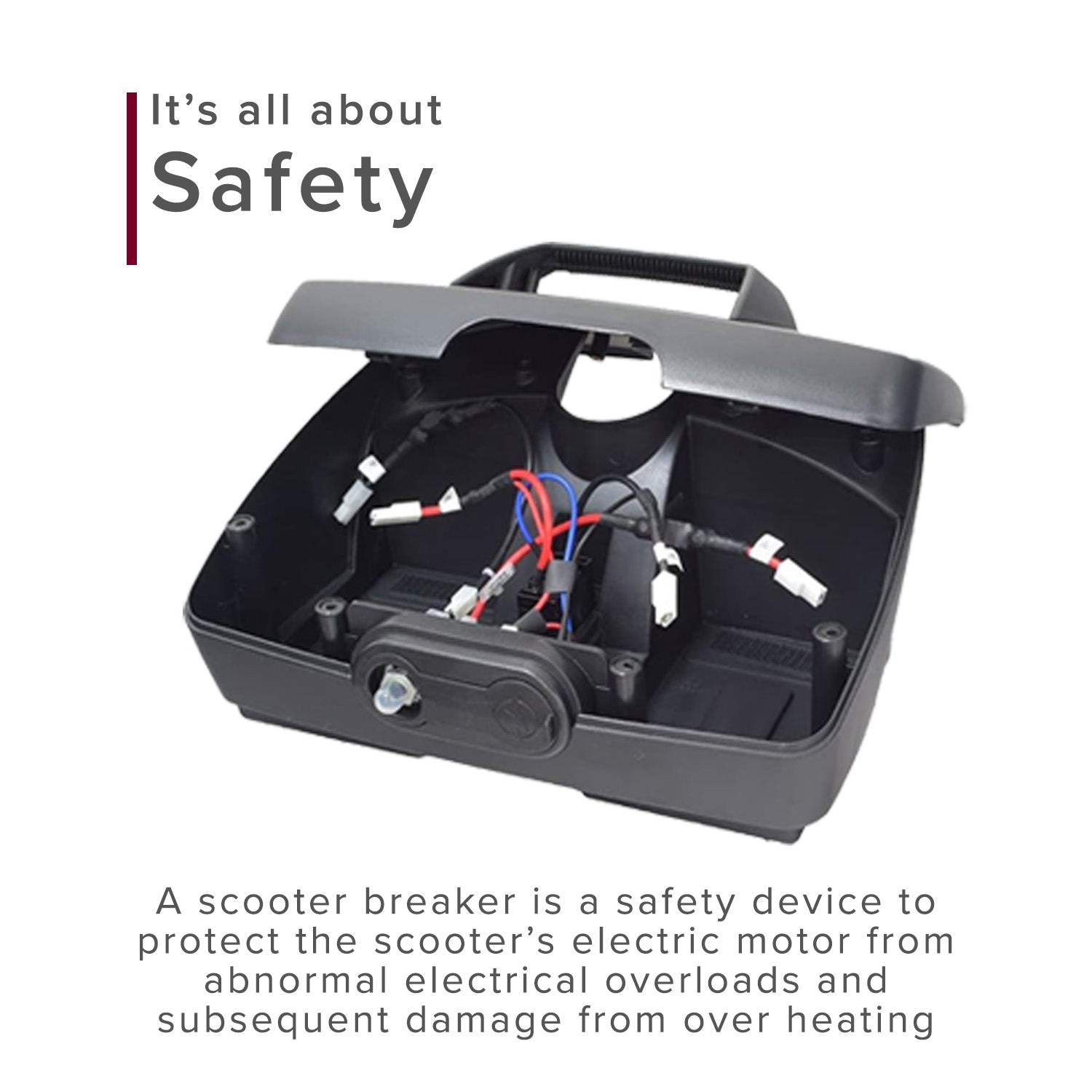 The 30 amp (30A) 32VDC 125/250VAC push-button reset circuit breaker is compatible with a number of electric scooters from Baja Motorsports, Bladez, X-Treme, and some others. In addition, this push-button circuit breaker is also found on a number of mobility scooter models from respected brands including Invacare and Merits. With a compatibility range like this, you can be sure that our 30A reset breaker is a top-notch and trusted scooter part that will protect your scooter’s electric motor from abnormal electrical overloads and subsequent damage from overheating.