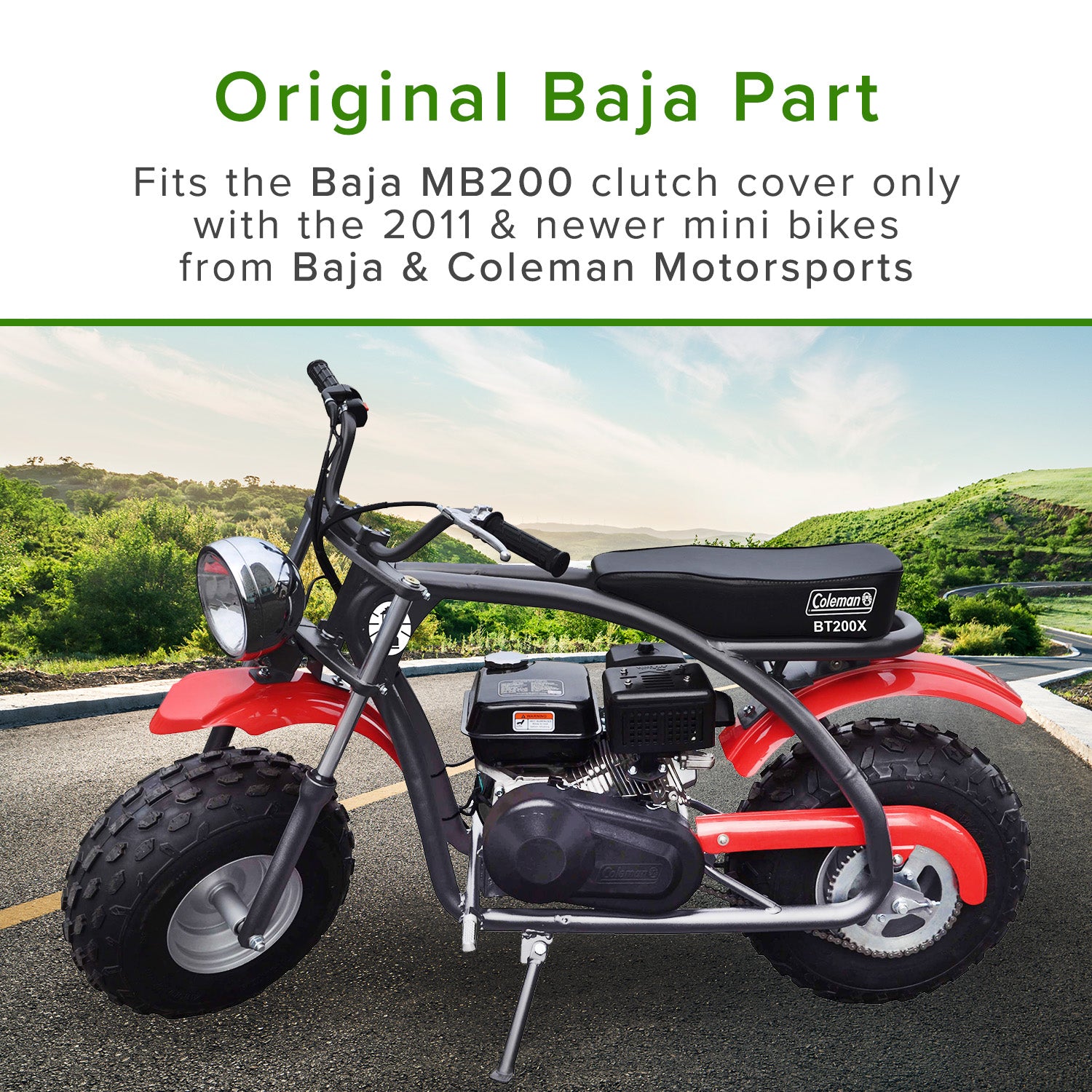 NOTE: This Baja MB200 clutch cover is compatible only with the 2011 and newer mini bike from Baja Motorsports. This part is not compatible with the original MB165 mini bike. The plastic clutch cover (found on the right side of this item page) must be used on the Baja Mini Bike MB165.