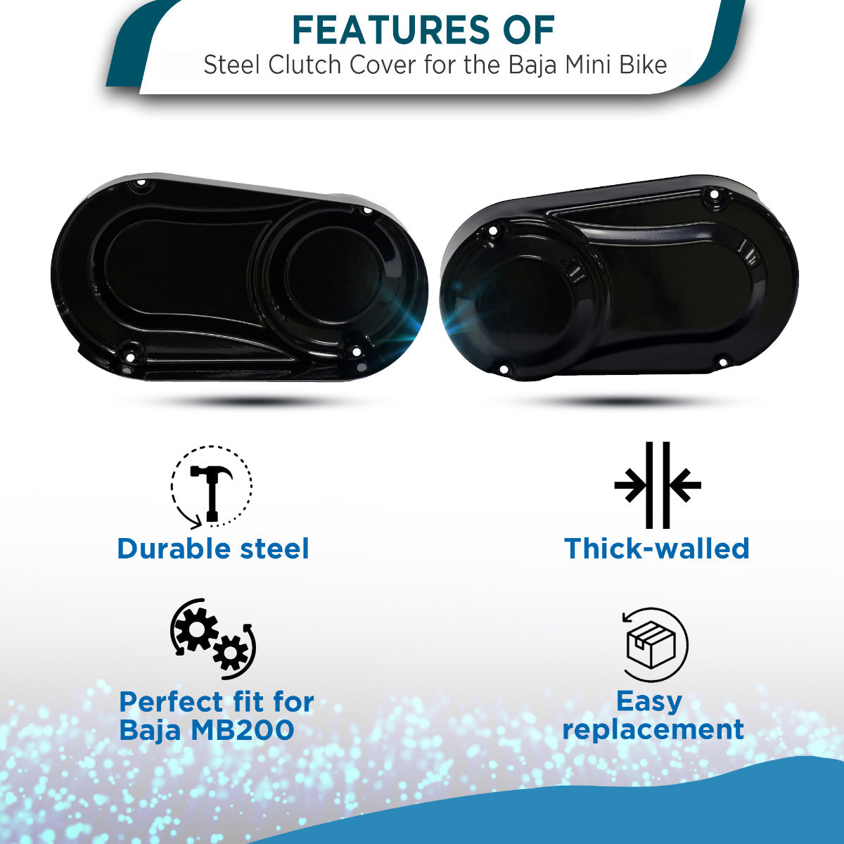 Our clutch cover for the Baja Mini Bike (MB200) is made of thick walled steel, this is no spindly, lightweight clutch cover.
