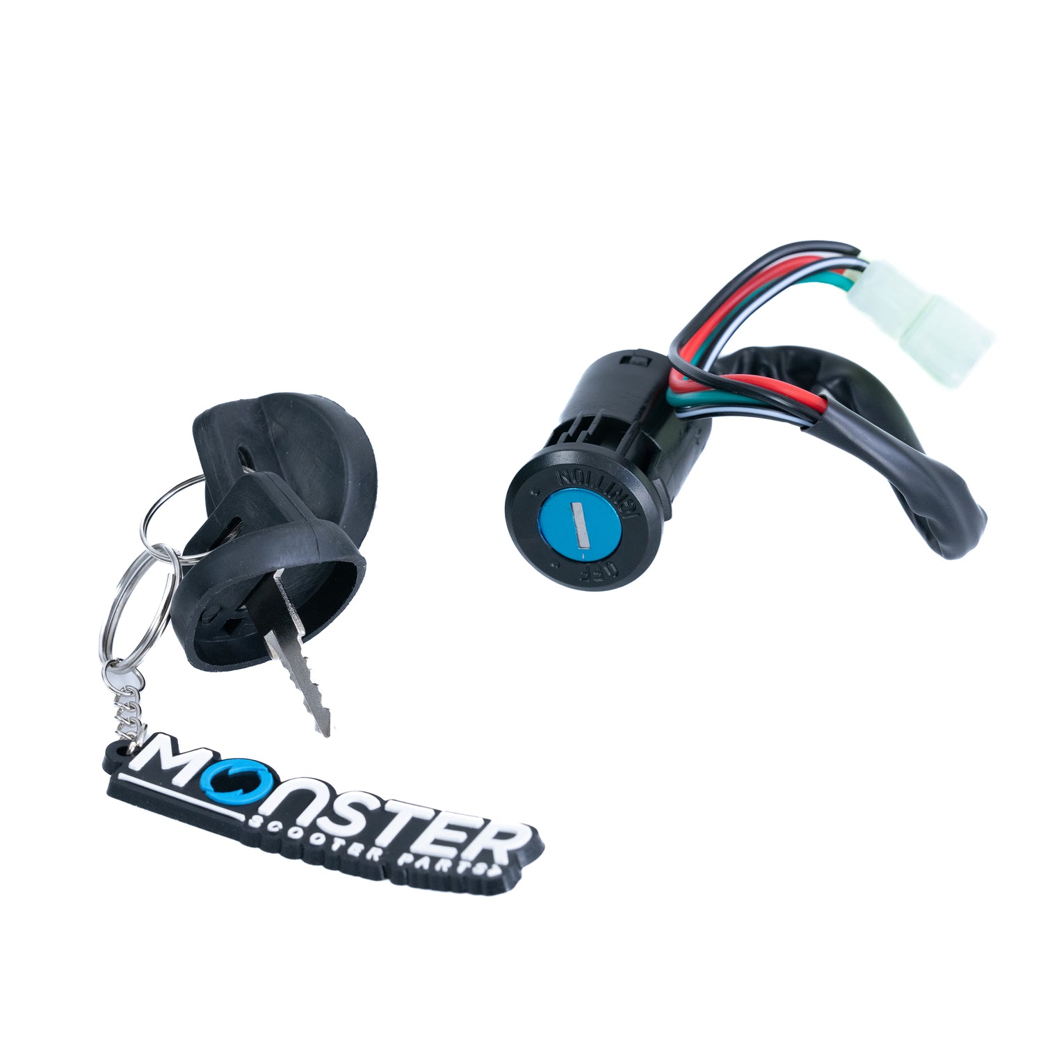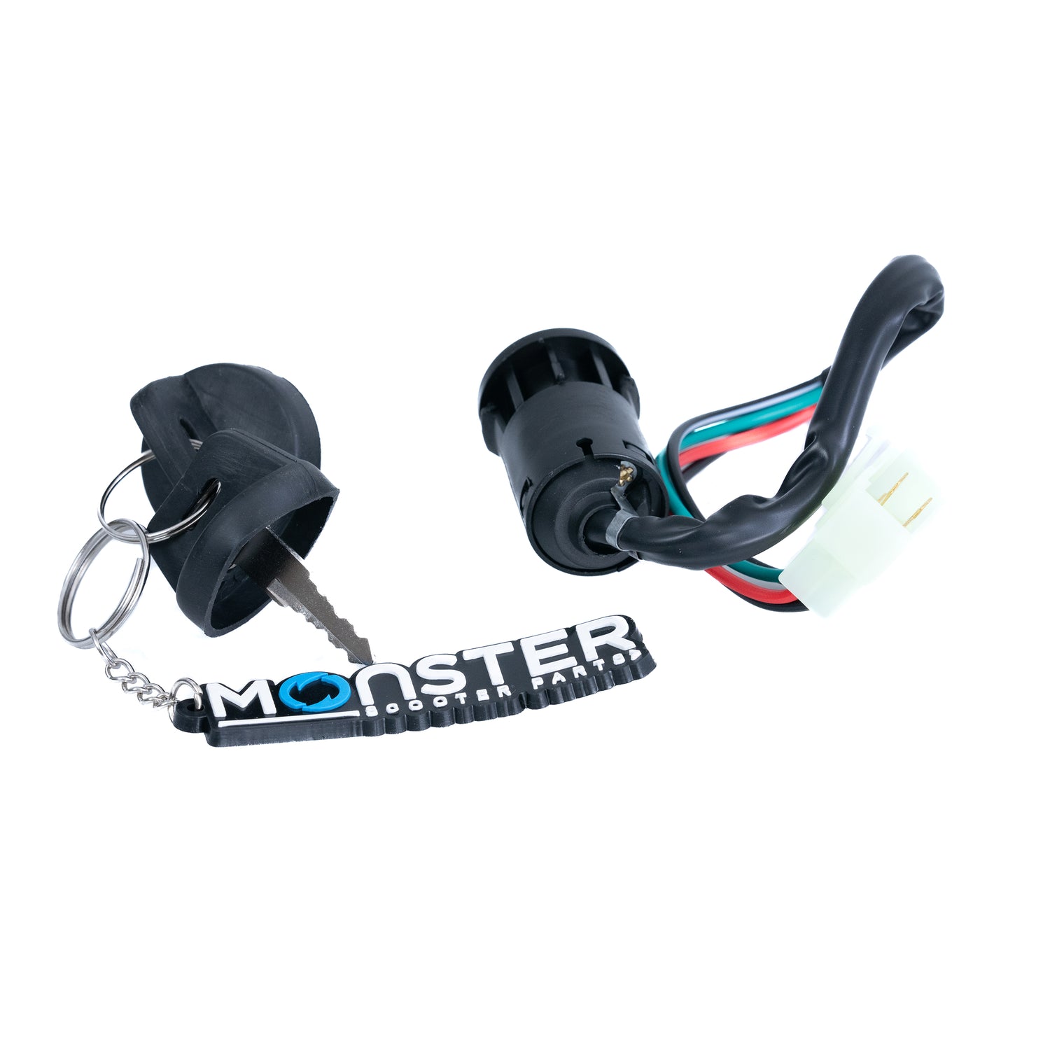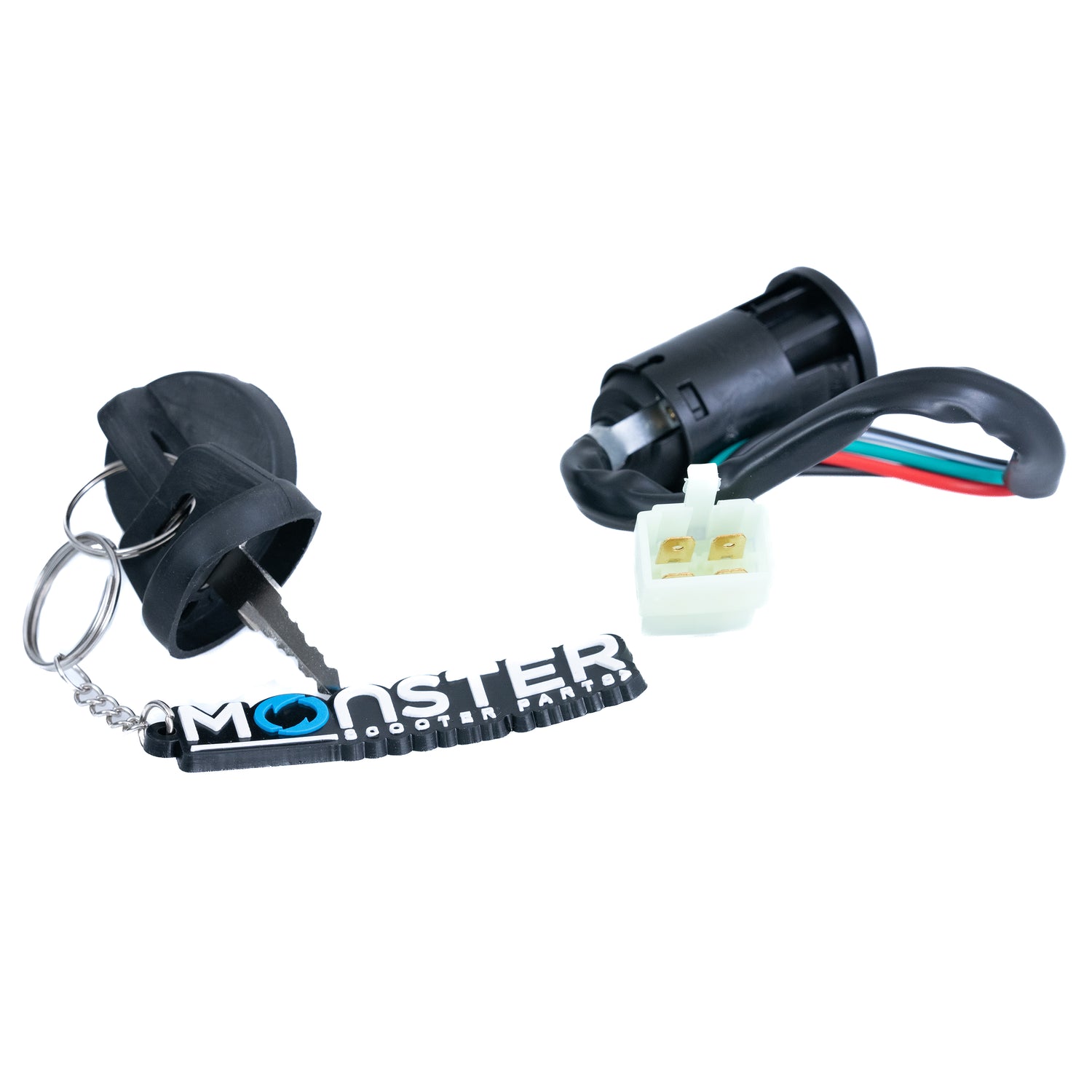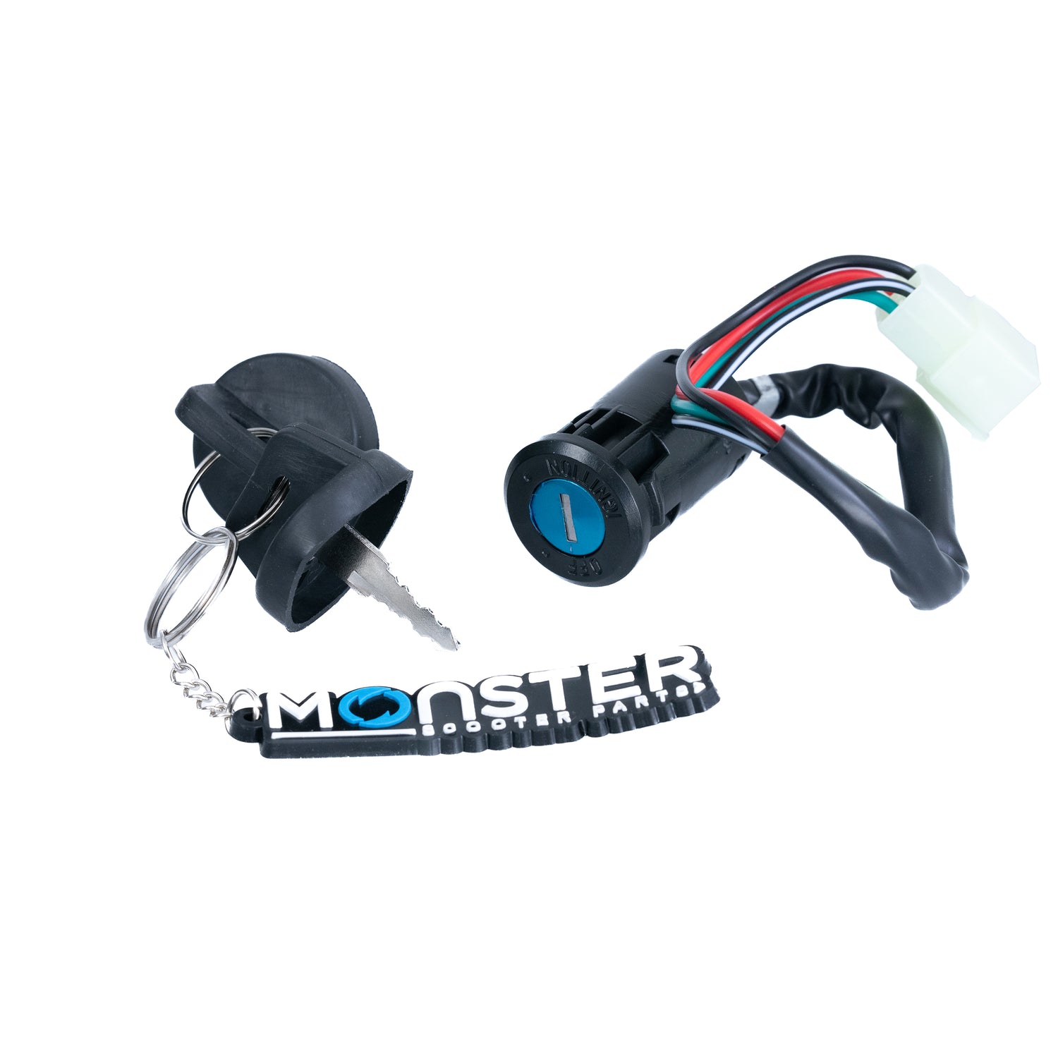 4 Wire Ignition Key Switch for Dirt Bikes & ATVs (Snap-In Mount, Male Connector)