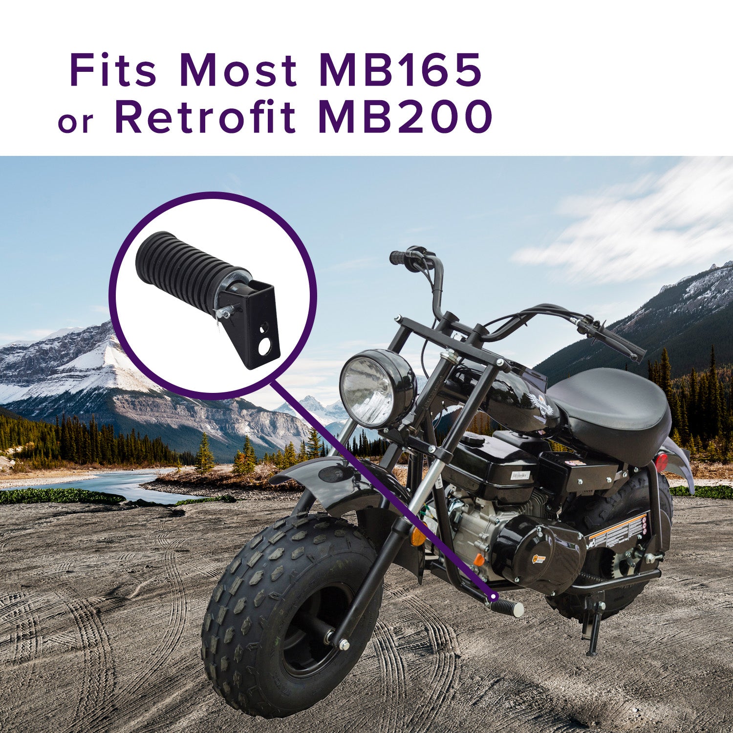 Note: Very early versions of the MB165 with VIN prefix of LUAH may have a problem with this footrest peg. The inner sleeve of the footrest may need to be cut or shaved off a bit for proper fit. It is compatible with the MB165 and may be retrofit onto the MB200 mini bike.