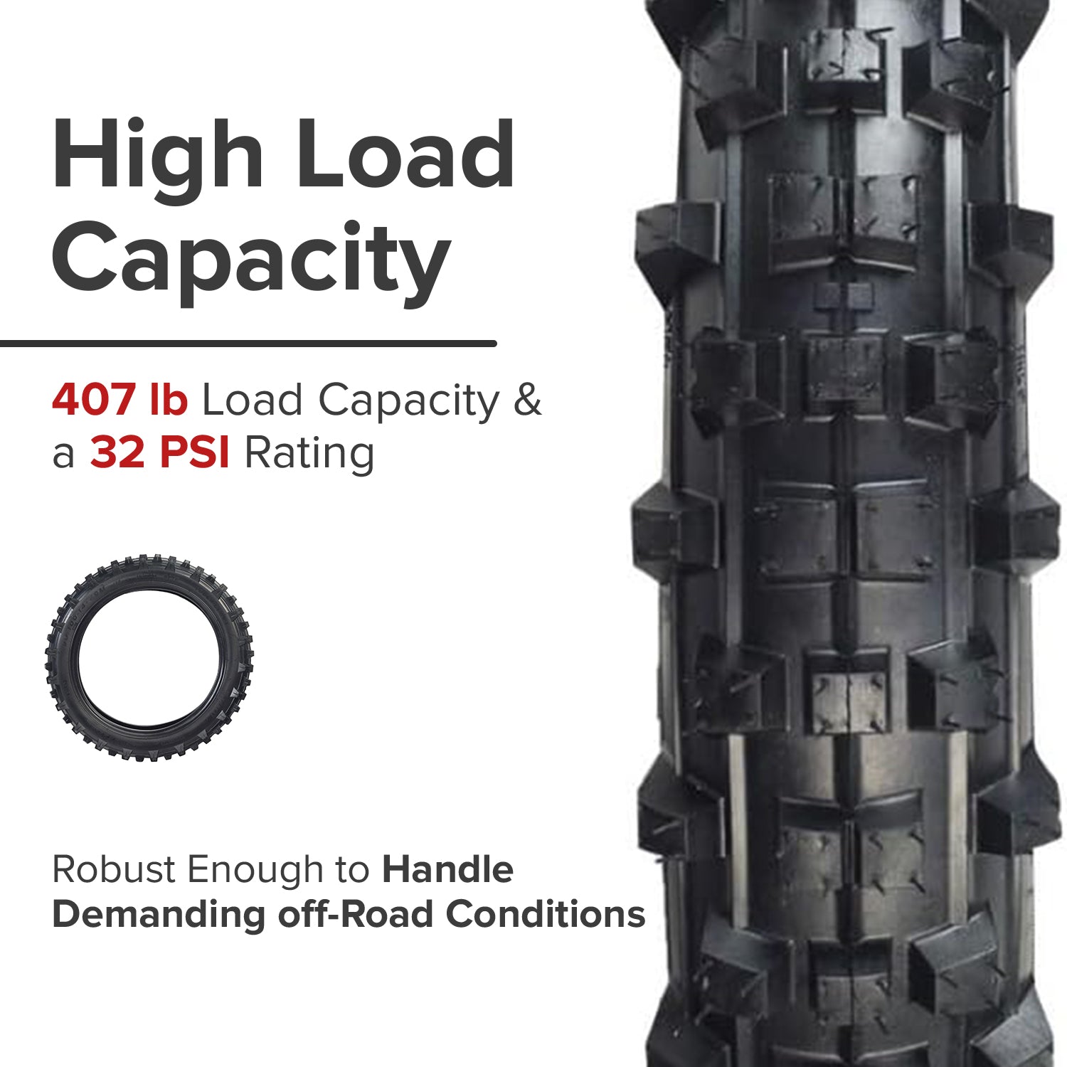 One of the best hardcore dual-sport tires available, our 90/100-14 (3.00/4.10-14) dirt bike tire with knobby tread is perfect for the rider who isn't willing to sacrifice off-road performance. Comfortable in a wide range of surfaces, the tire gives a predictable feel whether on hard pack, sand, rocks, mud, gravel, or loam.