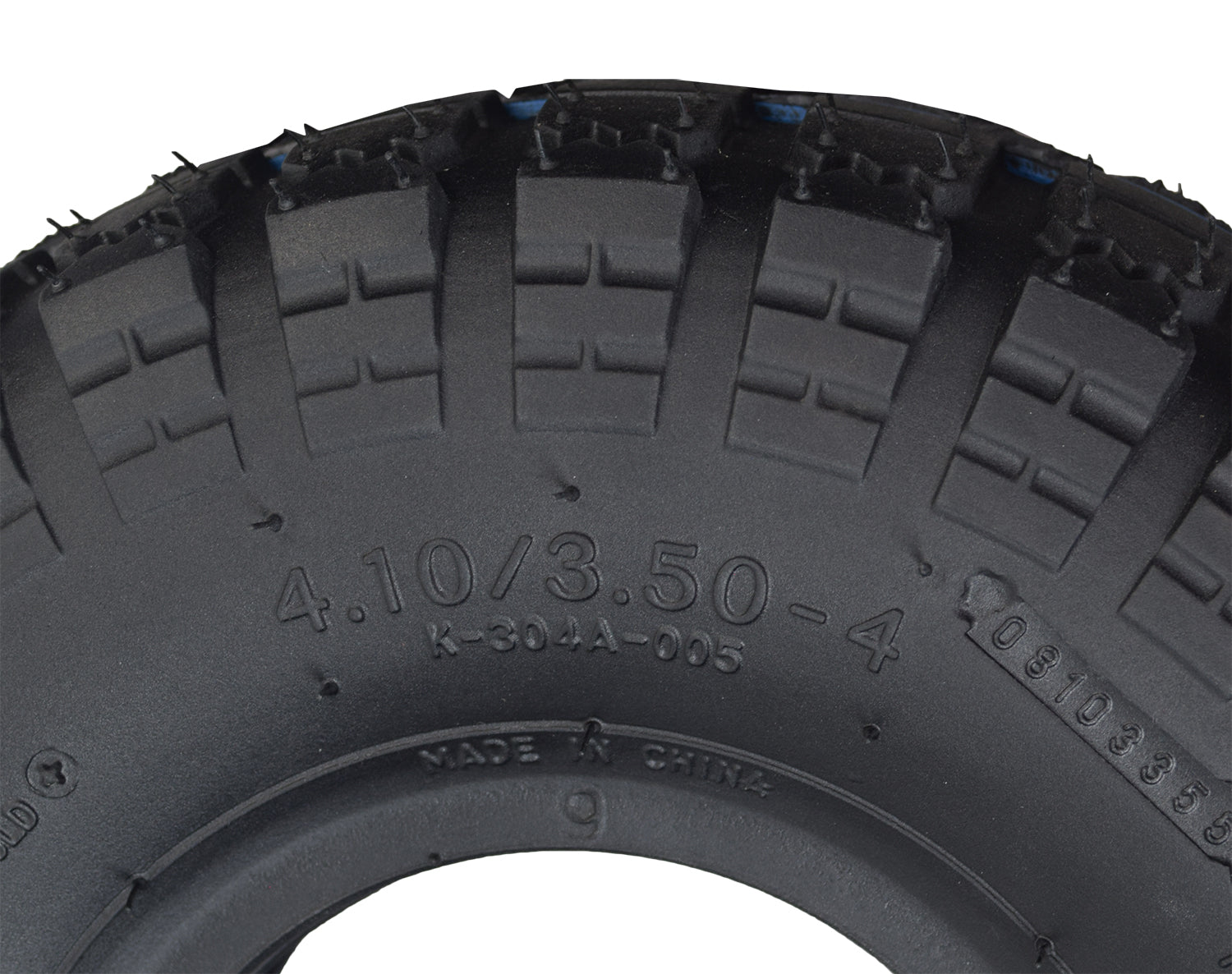 If you are looking for a 4.10/3.50-4 tire and tube set with knobby tread for scooters, mini ATVs, and go-karts then we have just what you need. We took our 4.10/3.50 knobby pneumatic tire with its aggressive looking tread and 2 ply rating, and we now offer it bundled with its own inner tube. This is a great combination set, and the best part is the great price.