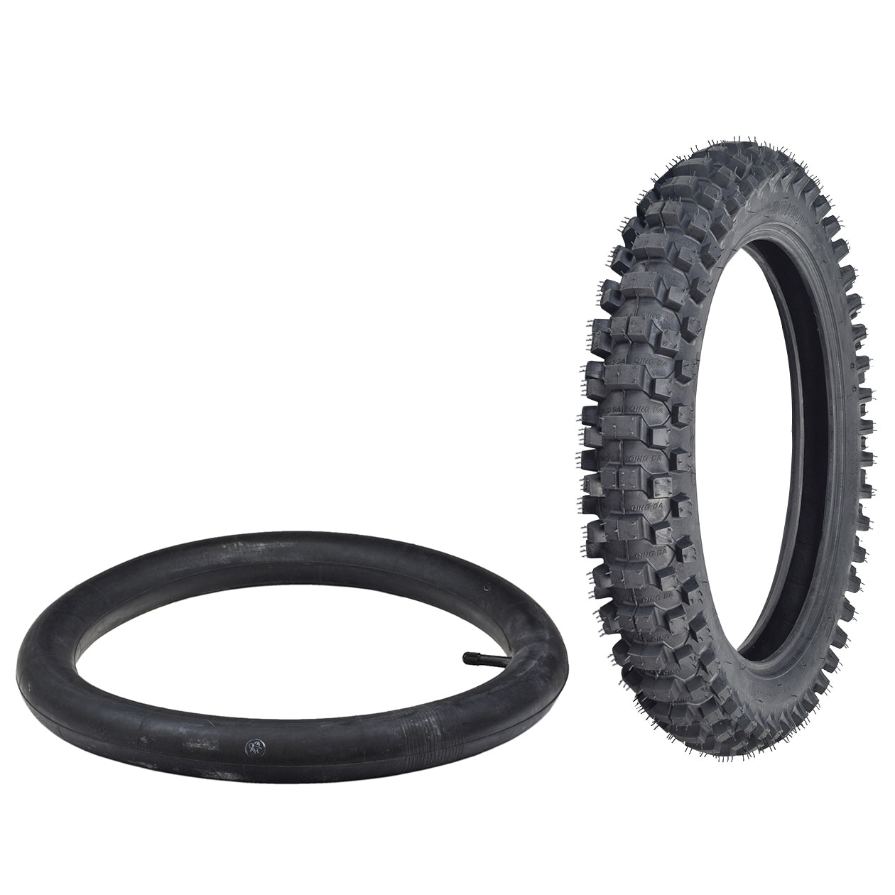Our 70/100-19 dirt bike tire and tube set with knobby tread is one of the best deals going. This great knobby tread tire and inner tube combination will fit on a wide range of applications including dirt bikes from Baja, Coolster, and others.