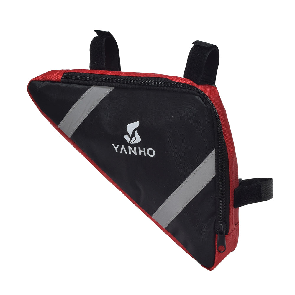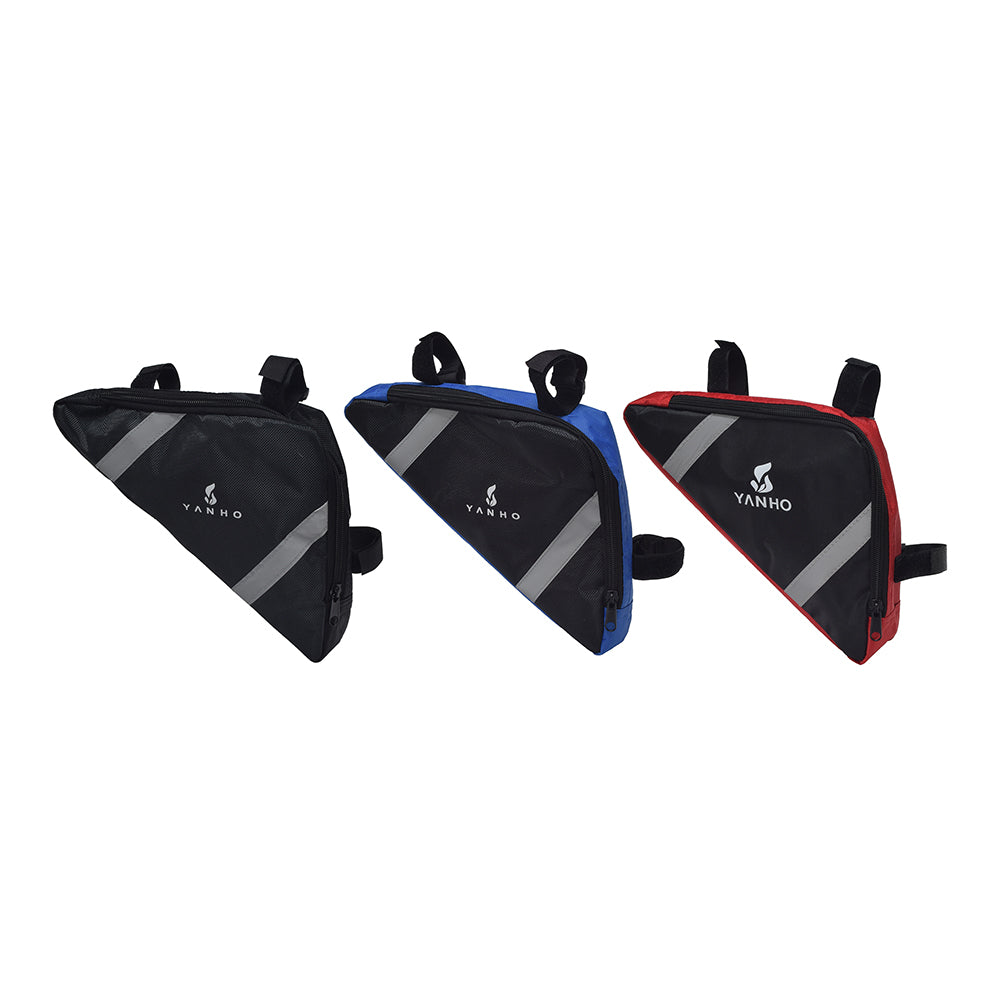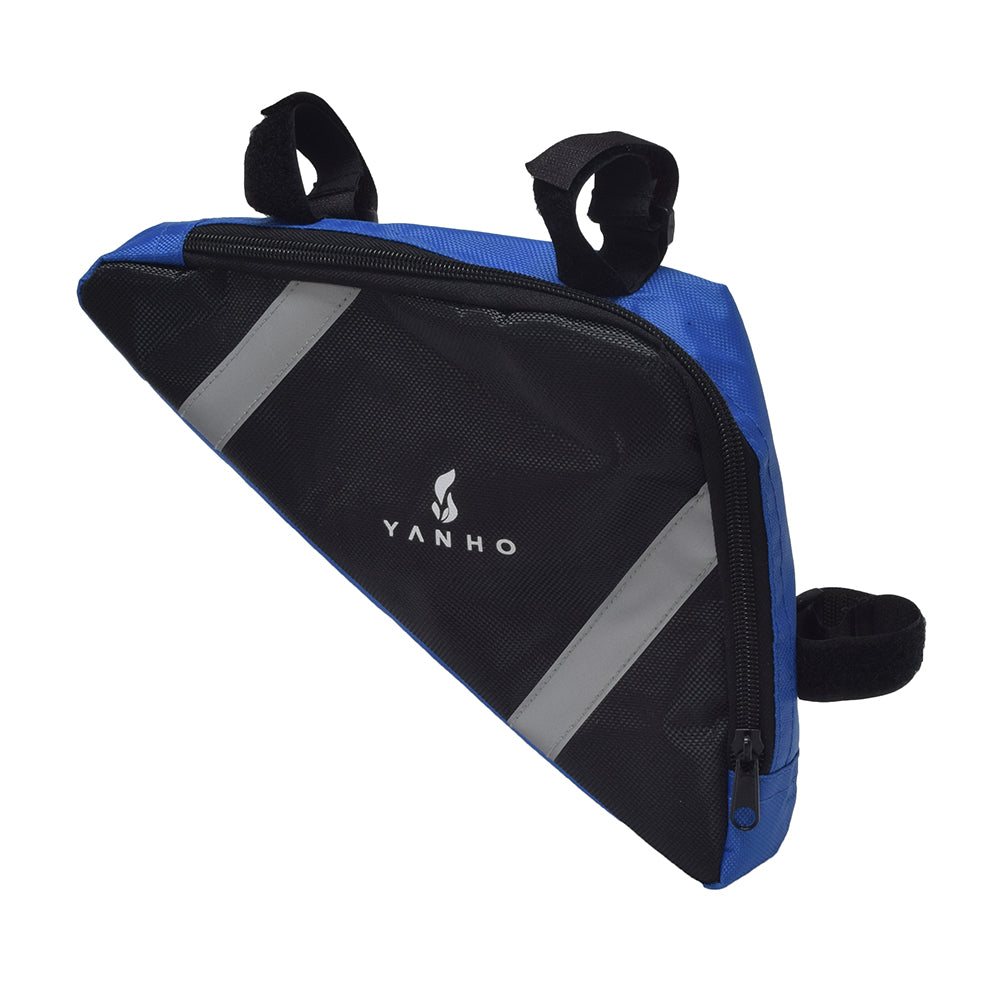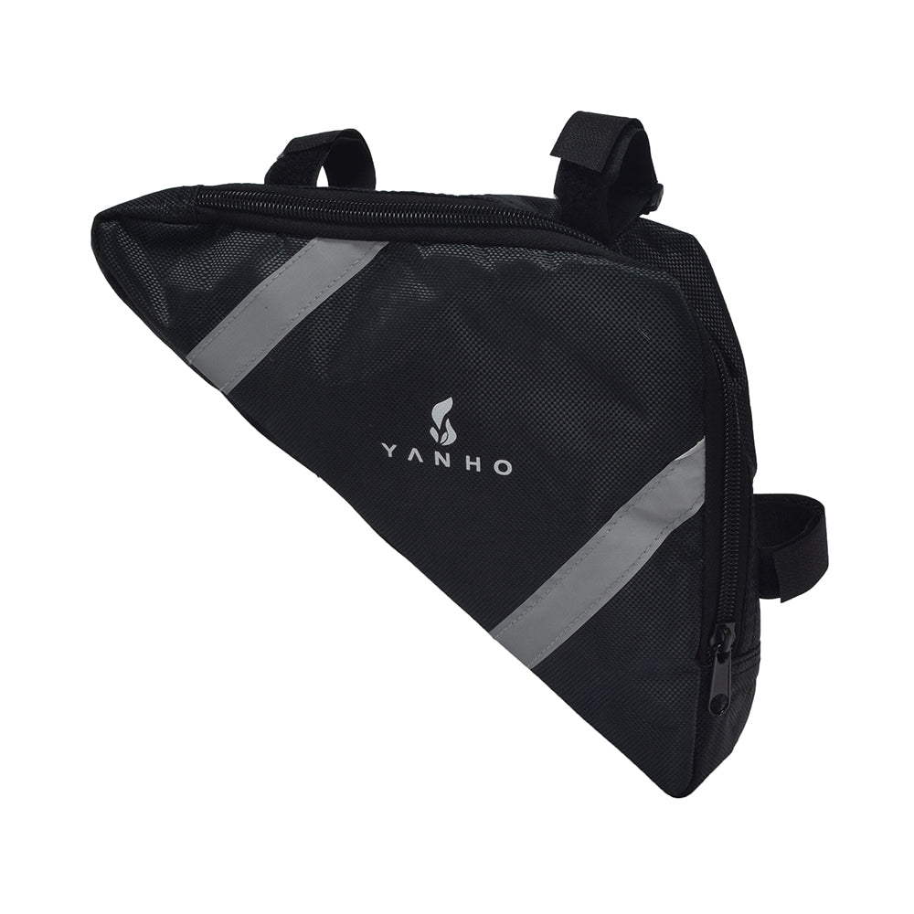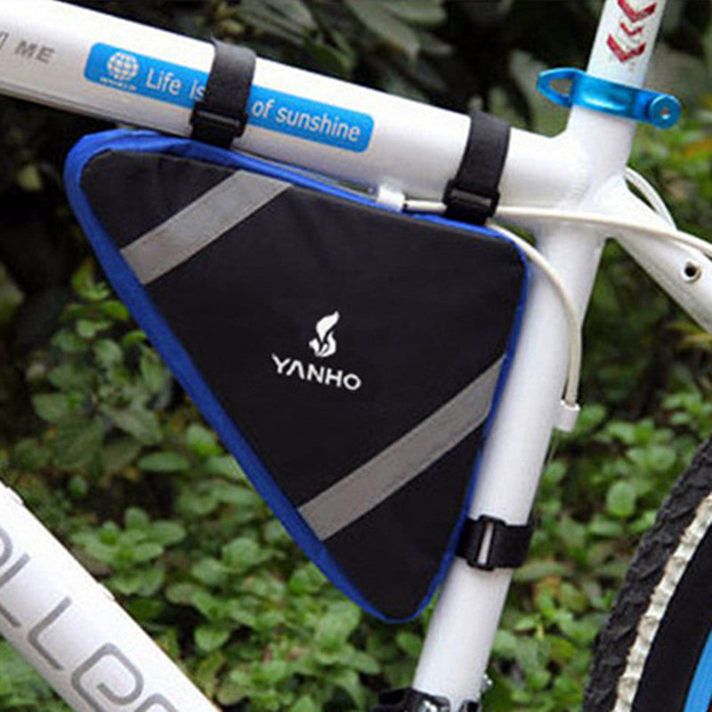 Now you can keep your necessary stuff safe and dry with a frame mount triangular bicycle storage bag. This weather resistant polyester pouch attaches securely to your bike's top tube cross bar and your seat tube with hook & loop straps.