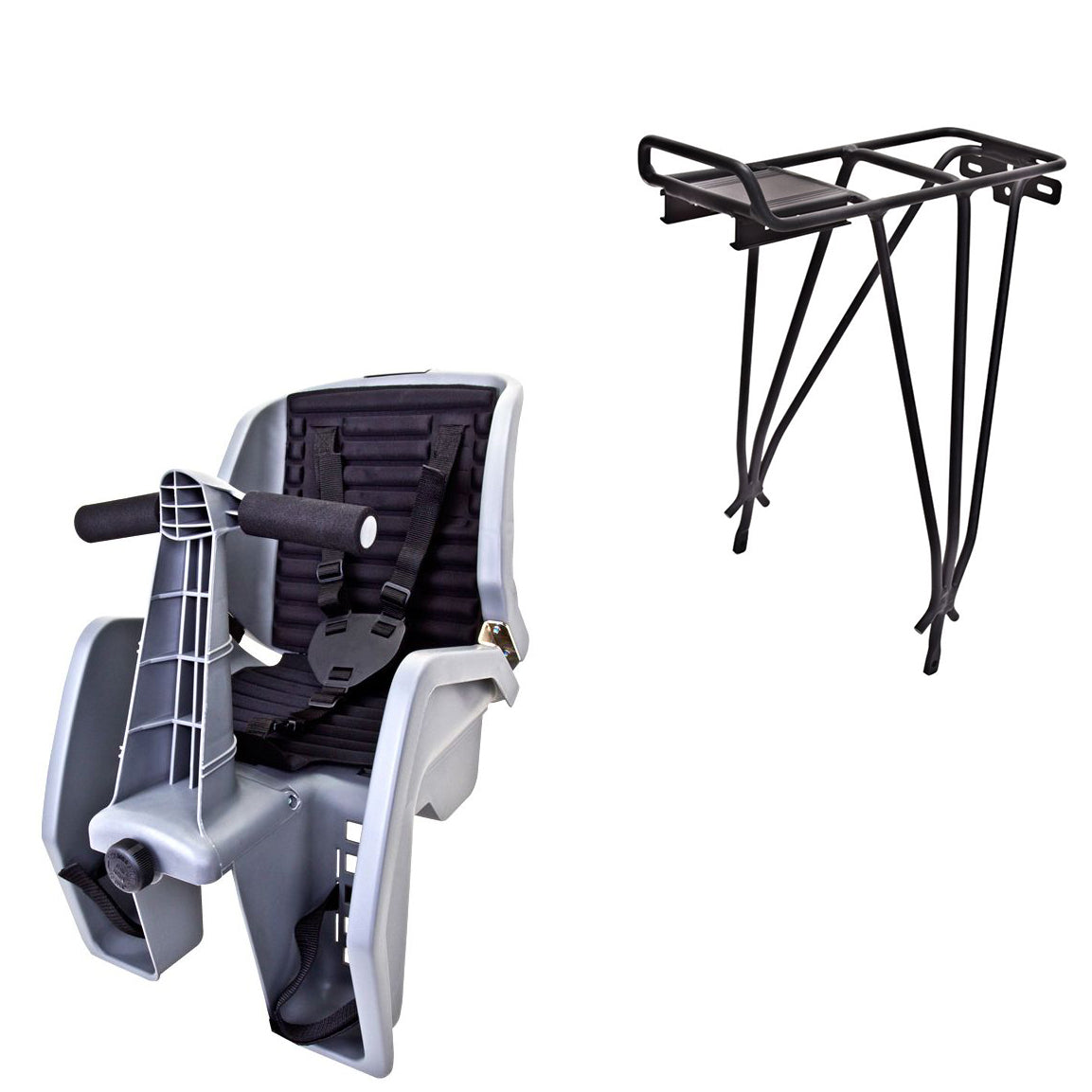 A strong seat that provides fun and ensures safety; the Child Carrier Baby Seat with steel rear rack from Sunlite Cycling is a fine way to take your youngest along for the ride. A rear-mounted bike child seat is preferred by many parents who like their child riding directly behind the adult's saddle.