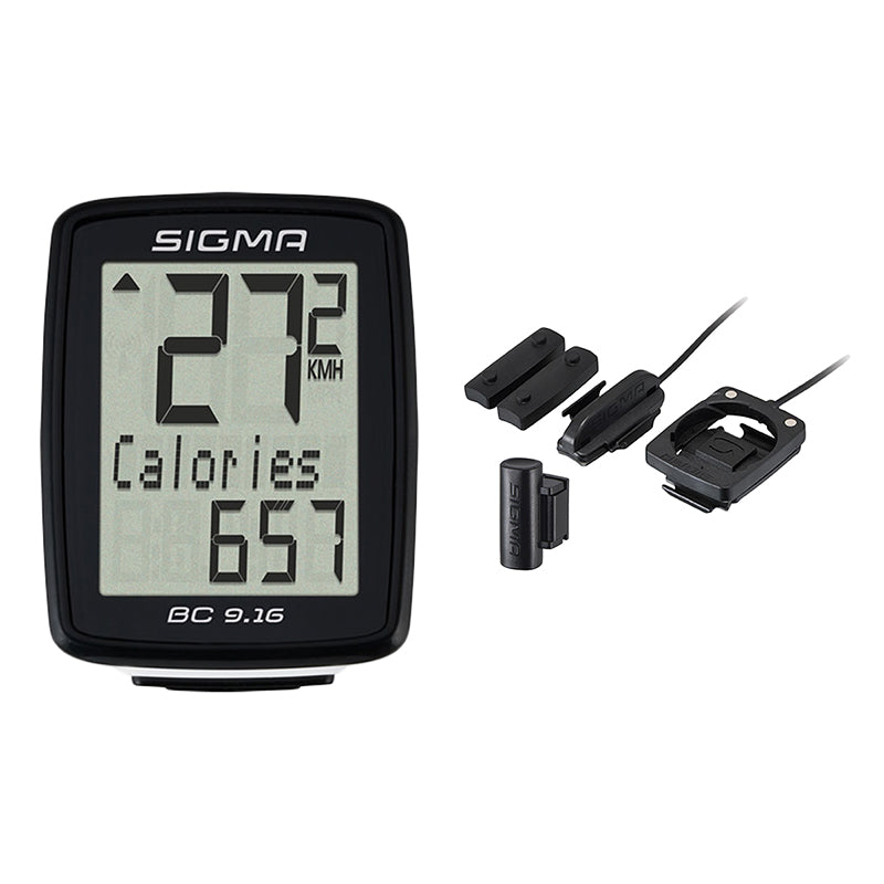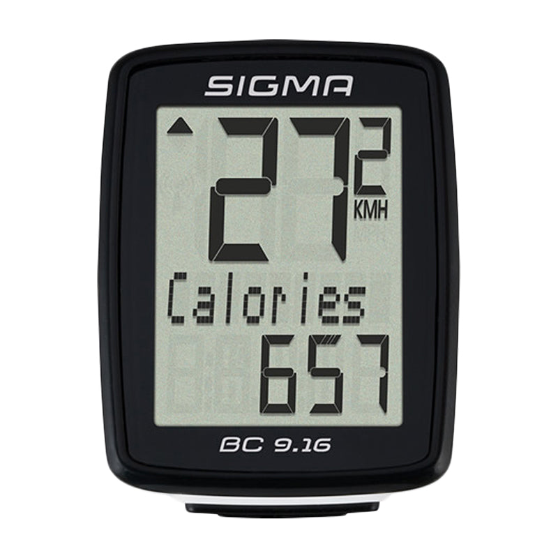 The Sigma BC 9.16 wired bike computer is a modern bike computer with a myriad of functions, and it is the ideal bike computer for fitness. In addition to displaying maximum speed, the BC 9.16 estimates the number of calories burned based on speed and duration. This handy little cyclocomputer offers extensive general, bike, time, and temperature functions.