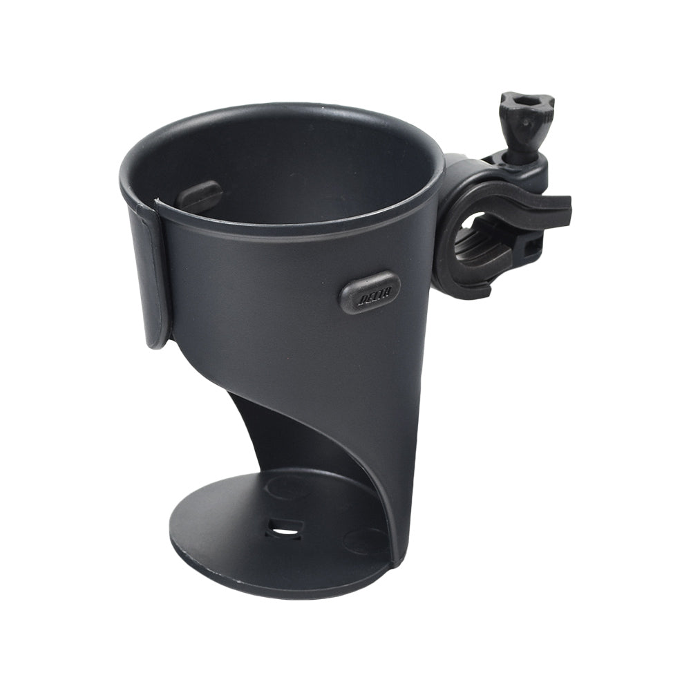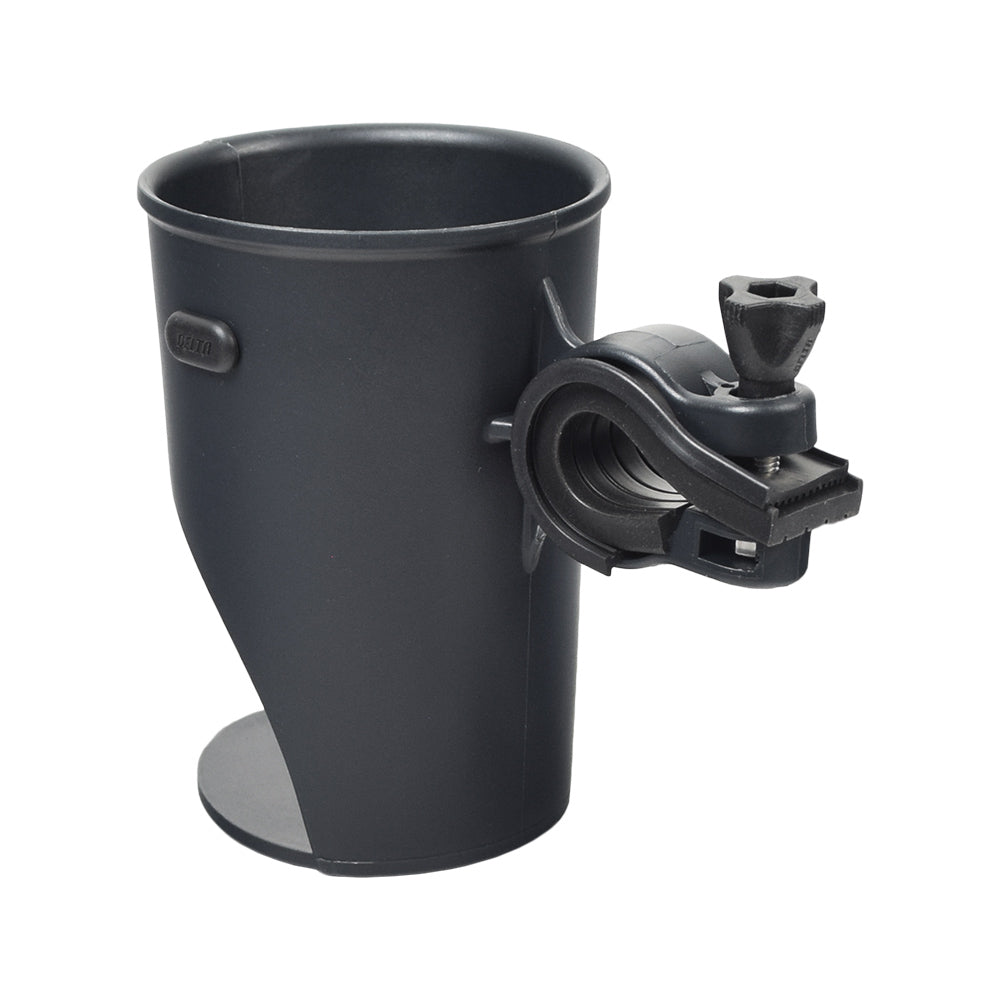 The expanding cup holder grips most size beverage containers up to 24oz, whether a dedicated water bottle, a styrofoam coffee cup, or a 12 - 16 oz. aluminum can. It uses good old fashioned tension to hold your cup, can, or bottle tight so it doesn't go bouncing out, and the angle is easily adjustable to keep your open drink level. Try cruising with your plastic-lidded caffè latte not held level and you can see why the Delta Holdits Grande is such an innovative and thoroughly useful invention.