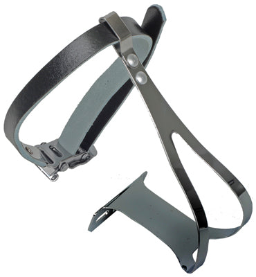 Extra Large Racing Black Chrome Toe Clips with Leather Straps is backordered and will ship as soon as it is back in stock.