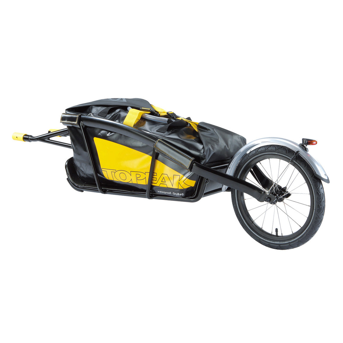 Great for camping or longer trips, this innovative trailer from Topeak offers a 70 lb. weight carrying capacity. The waterproof dry bag offers 3880 cu in. of protected storage space and is sonically welded and seam-sealed. The bad even sports a carrying handle.