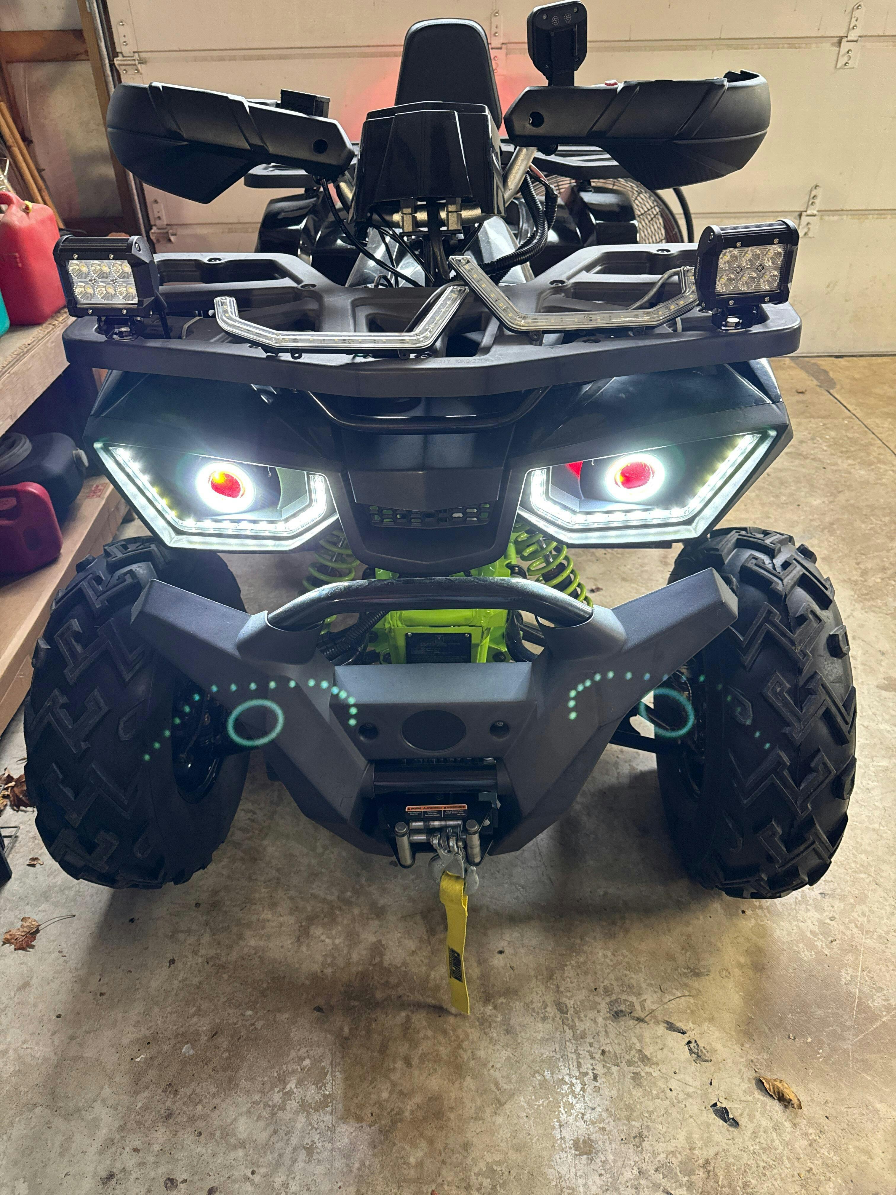 Our LED front light set for the Coleman AT200-B is a direct replacement for the factory running lights. Located underneath the headlights, these LED running lights improve safety by helping the rider see farther when running the ATV in low light conditions.