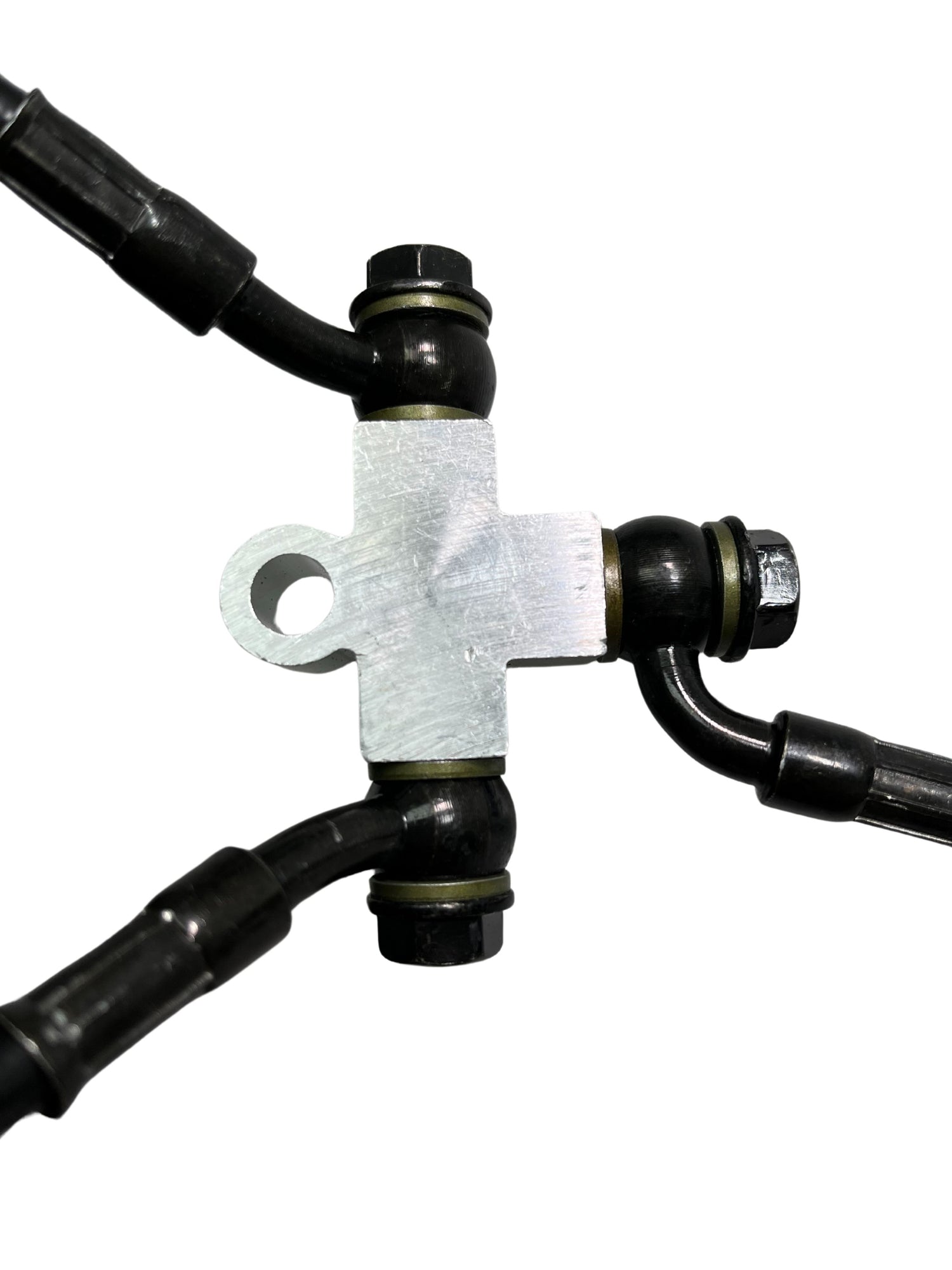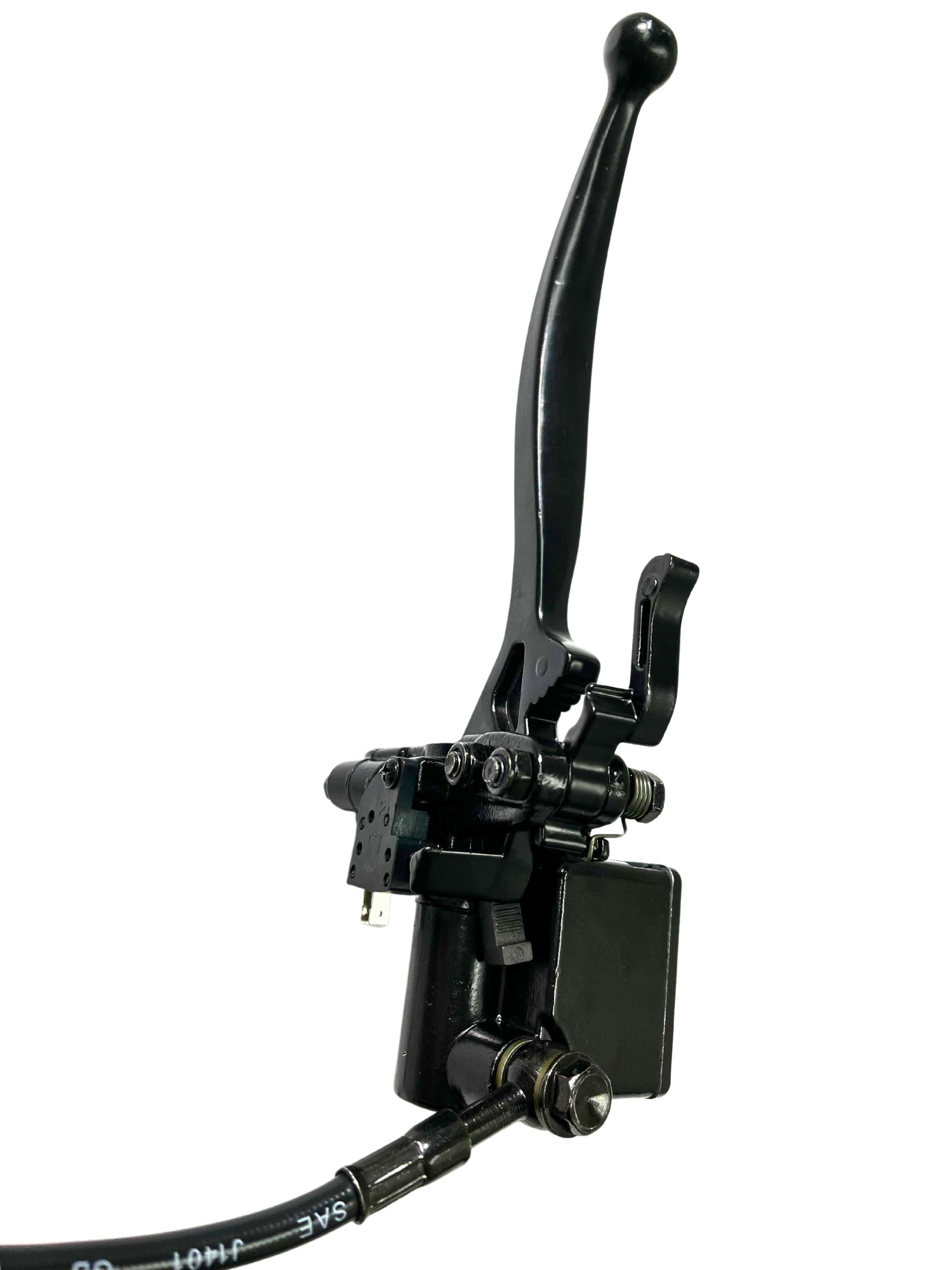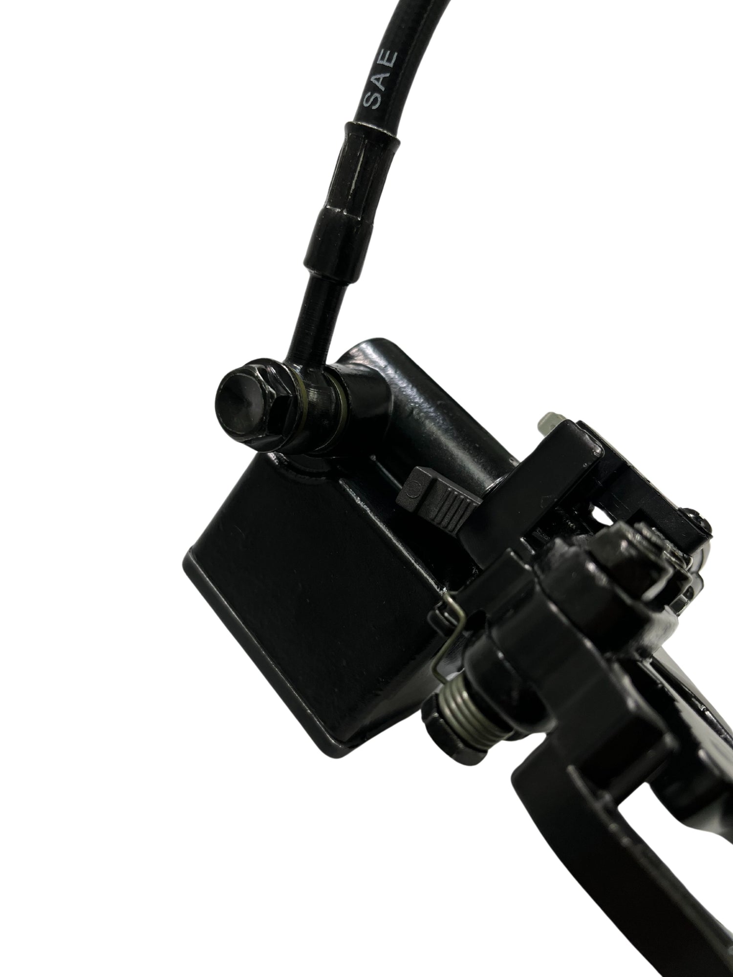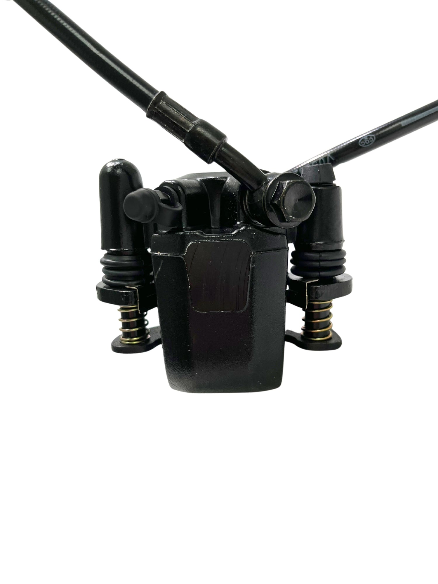 - Includes the two calipers, asymmetrical brake pads, master cylinder, brake fluid line, & brake lever
