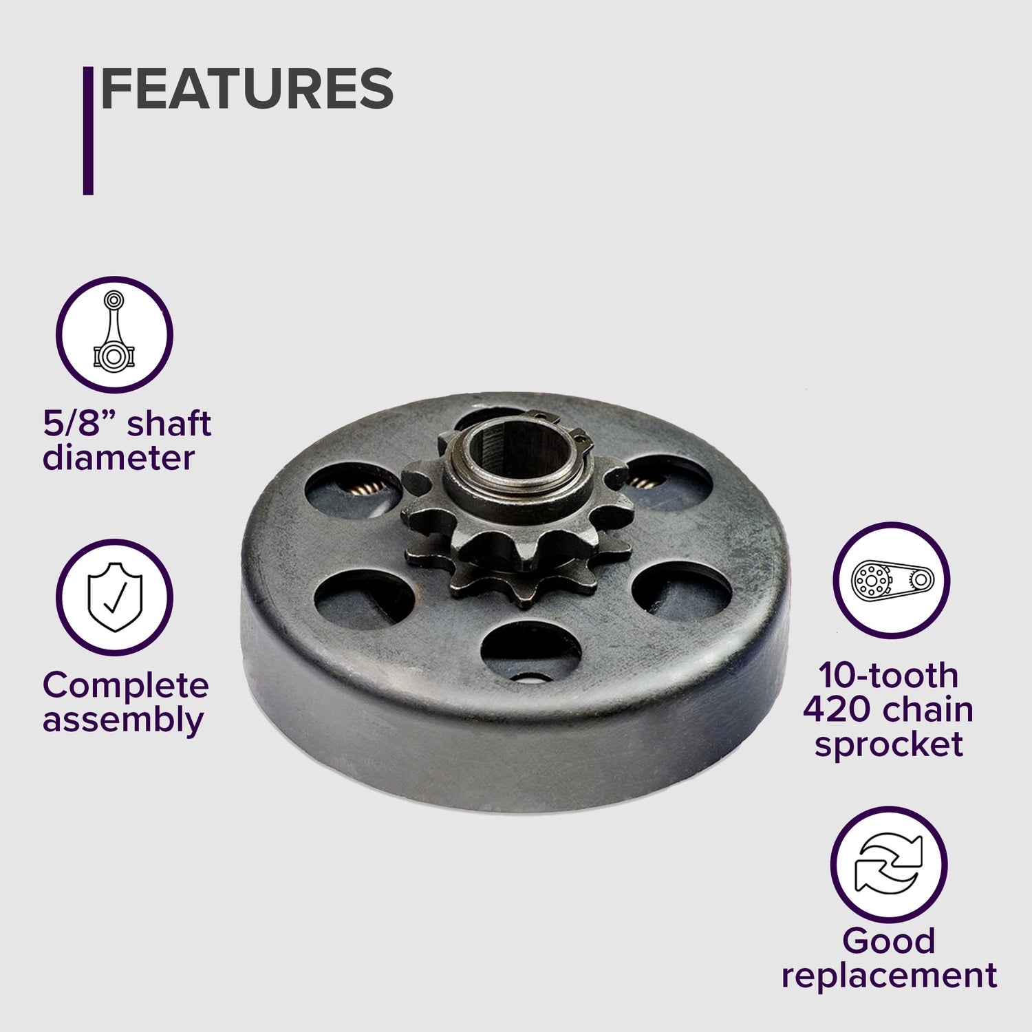 Clutch Assembly with 10-Tooth 420 Chain Sprocket for the Coleman BT200X, CT200U Trail & CT200U-EX Mini Bikes