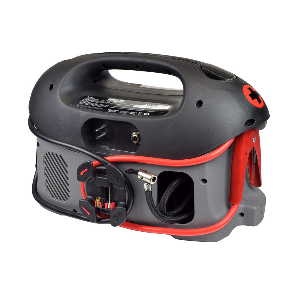 In addition to the standard battery charging and jumping functions, the All-in-One features a 250 PSI compressor air pump to keep your scooter's tires topped-off and rolling along at their pneumatic best. The name All-in-One says it all.