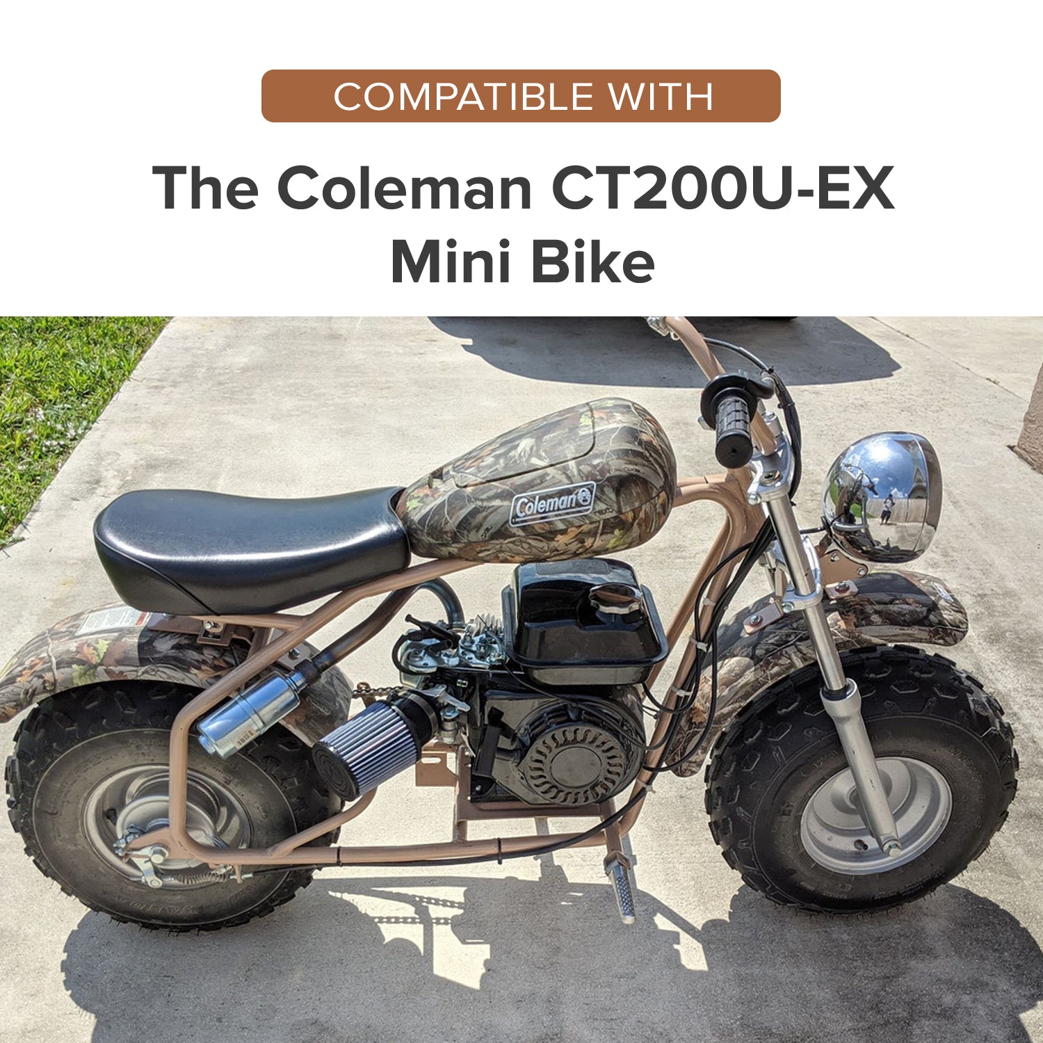 This vital piece of the mini bike is constructed of sand-colored steel.