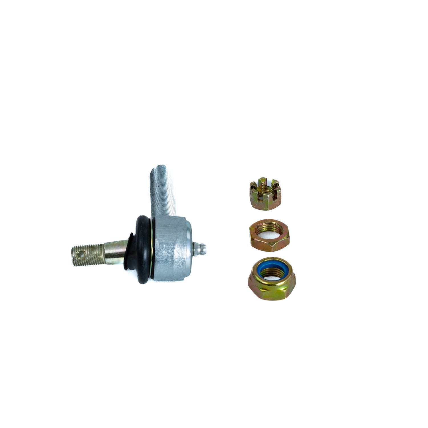 The steering ball joint for the Coleman AT200-B ATV uses the M12x1.25 threaded stud, and the longer 5/8-18 threaded a-arm stud. The ball joint includes the rubber boot, a grease zerk, an M12x1.25 castle nut, a 5/8-18 nut, and a lock nut for the stud. The use of metric and ASI thread on the same ball joint is not unusual.