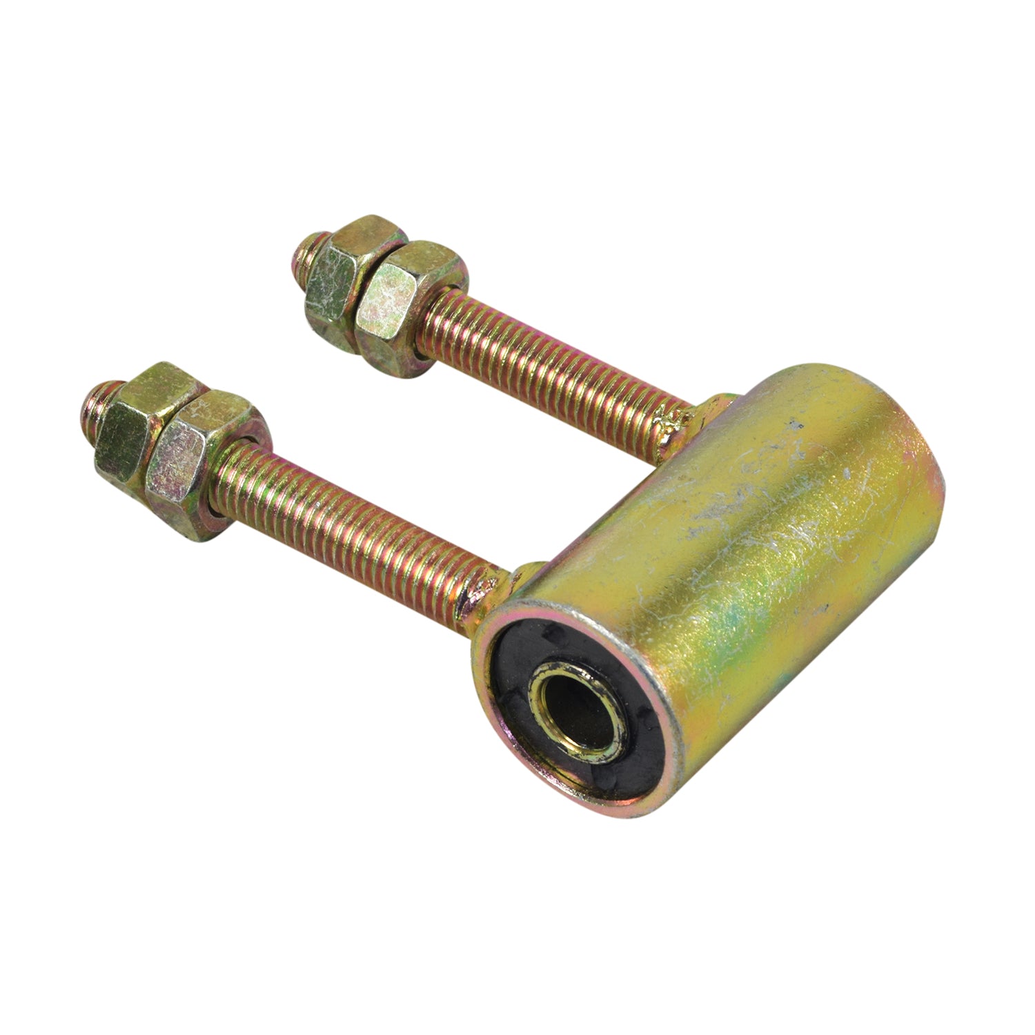 The drive chain tension adjuster for the Coleman KT196 and CK196 196cc 6.5 Hp go-karts is used to adjust the drive chain that goes to the axle sprocket. The adjuster features a pair of 2-3/8" M10x1.50 threaded studs complete with nuts.
