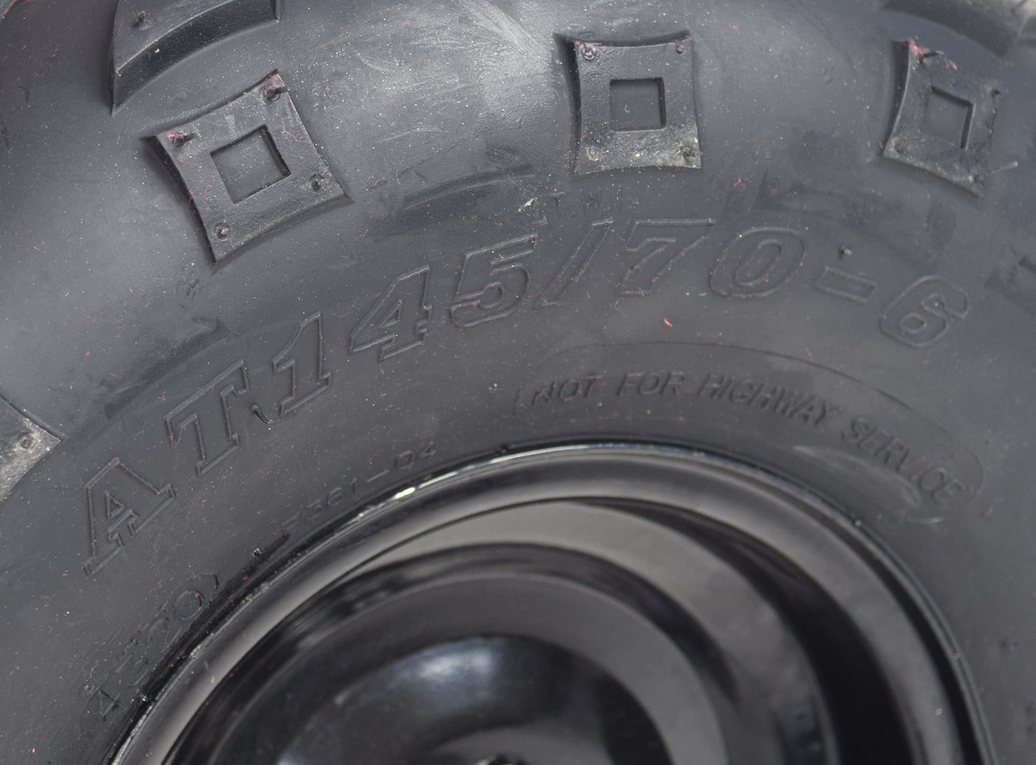 The front wheel assembly with rim and tire for the Coleman KT196 and CK196 196cc 6.5 Hp go-kart is a single all-in-one unit. The 145/70-6 steel rim with a sturdy V-tread tire for better traction on the track or trail.