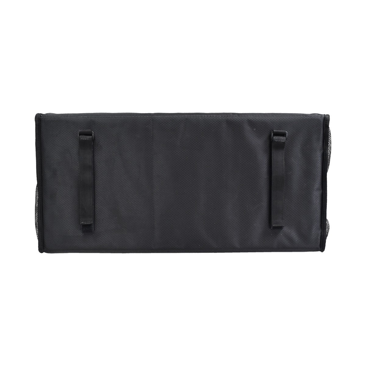 The insulated rack bag is made of strong & unbreakable ripstop nylon fabric, web mesh, and steel zippers, along with hook & loop fastening straps. You can use it with the included internally braced stiffening rods, or you can leave it soft. The underside sports a pair of webbing straps to secure to just about any cargo rack, giving this fine go-kart accessory almost universal compatibility. In addition, the rear cargo bag has reflective safety tape for low-light visibility, a weather-resistant exterior, and a carrying strap.