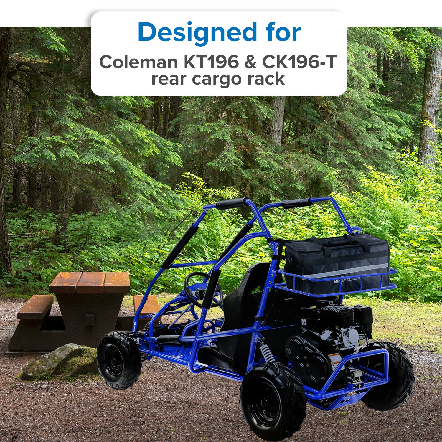 - Designed for the Coleman KT196 - This go-kart cargo bag was made to match the precise measurements of the Coleman KT196 & CK196-T rear cargo rack.