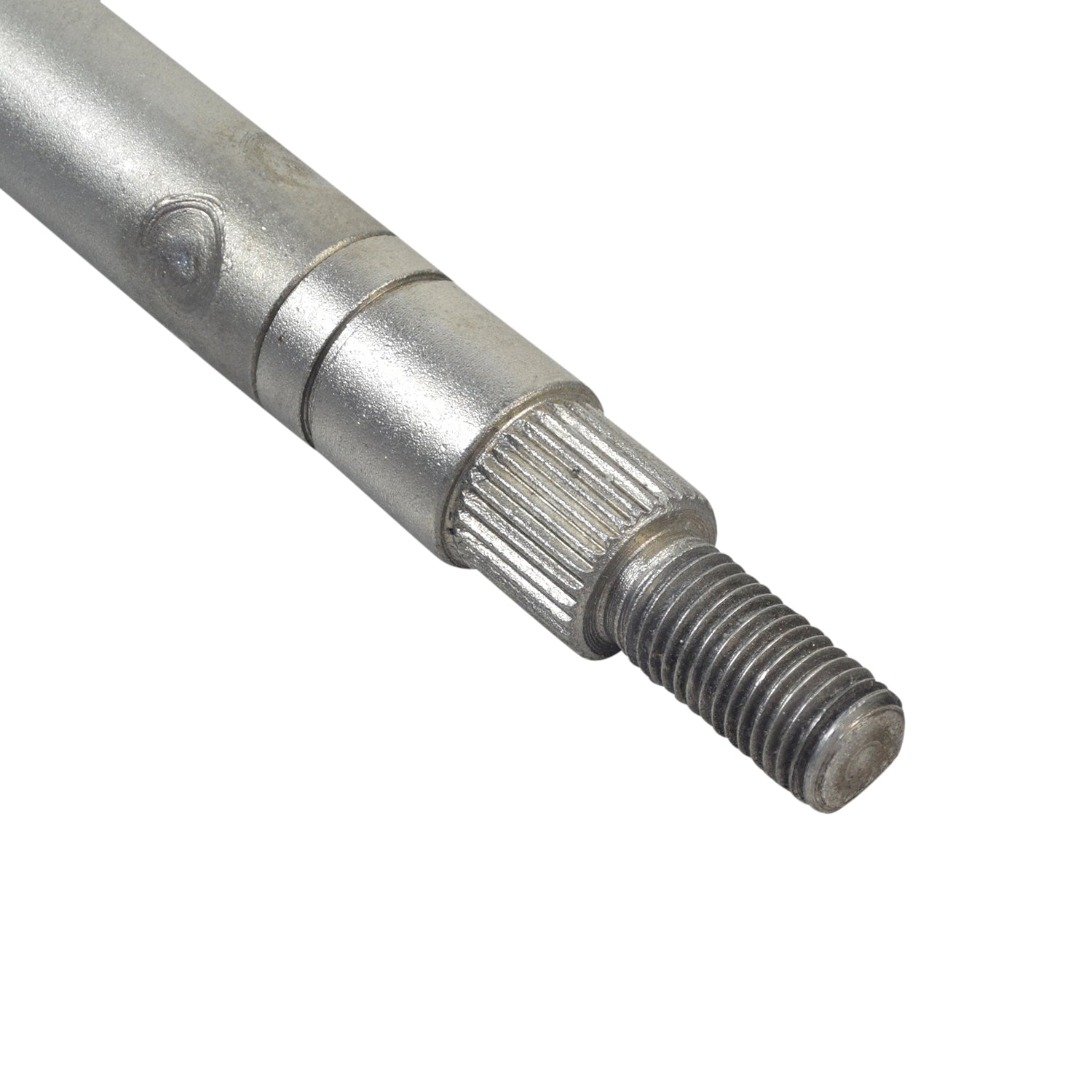 The Steering Shaft for the Coleman KT196 196cc 6.5 Hp Go-Kart is what connects the go-kart's steering wheel mount to the tie rods. The shaft is a 17.8" steel rod with a threaded end and a 2-1/4" flange on the other end.