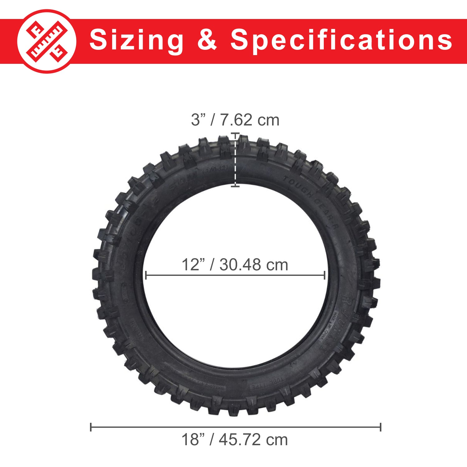 • 3.00-12 (80/100-12) dirt bike tire with knobby tread