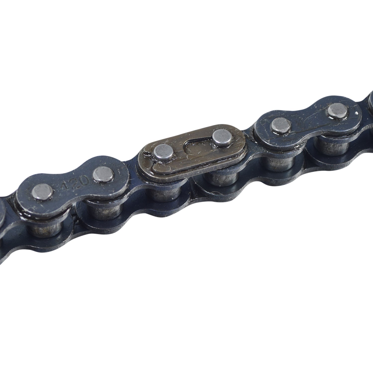 420 size chain used on small engine size ATVs, go karts, and dirt bikes, typically sizes of 49cc, 50cc, 70cc, 110cc, and 125cc. Included is 9 feet of open loop chain with a master link.