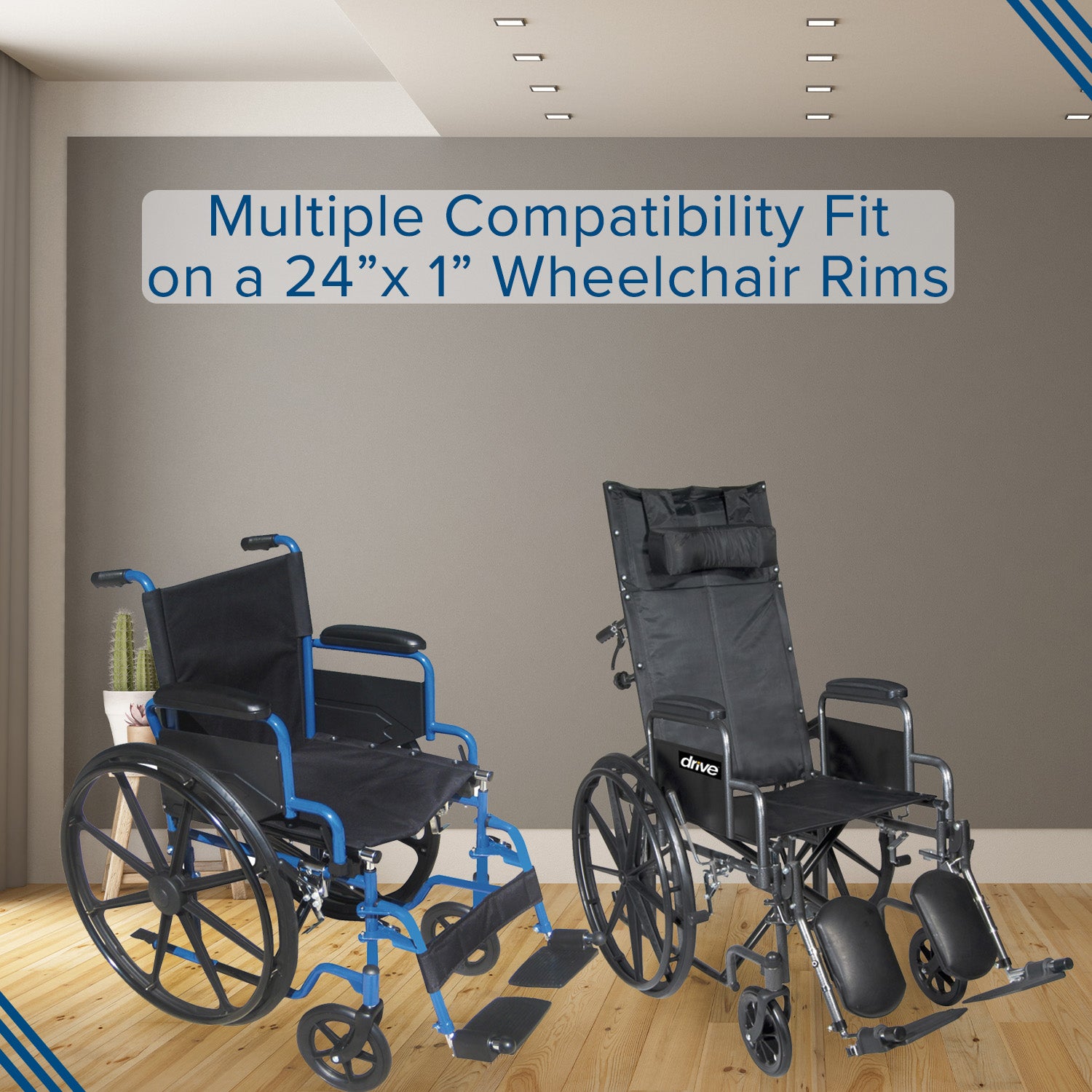 This tire is a perfect fit on the 24"x1" rims used on a number of Drive Medical wheelchair models such as the Blue Streak, Chrome Sport, Cirrus IV, Cruiser III, Silver Sport 1, Silver Sport 2, and Silver Sport Full Recline. In addition to these Drive Medical models, this flat-free, worry-free solid urethane tire might find its place on other brands and models.