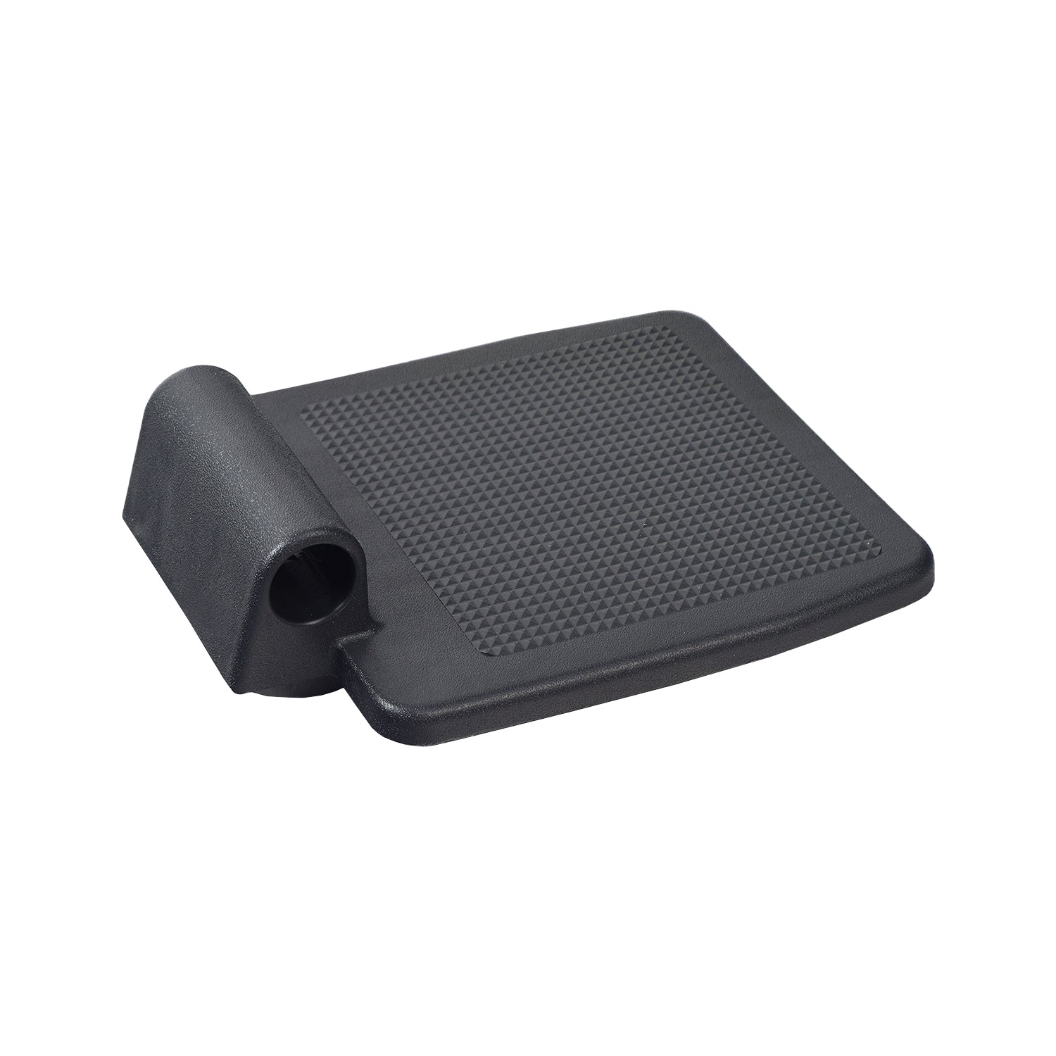 This footplate fits a wide variety of manual wheelchairs, including the Drive Medical Blue Streak wheelchair. It is made to fit either side of the chair's footrest assembly. It uses a textured surface for additional grip and enhanced rider safety.