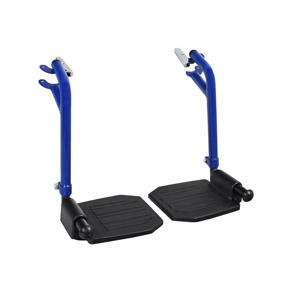 The footrest for the Drive Medical Blue Steak manual wheelchair is actually a complete set of two footrests with hangers; one for the left side of the chair and another for the right side. Sporting a rich blue finish, these foot riggings are a perfect blend of convenience and budget-friendly economy.