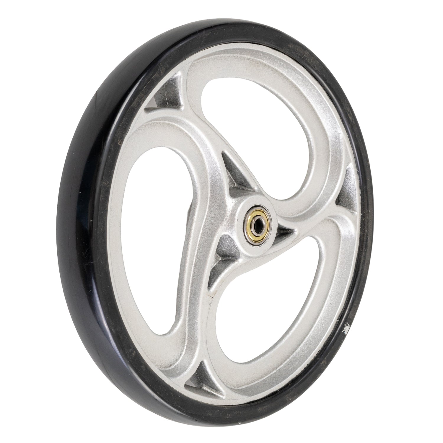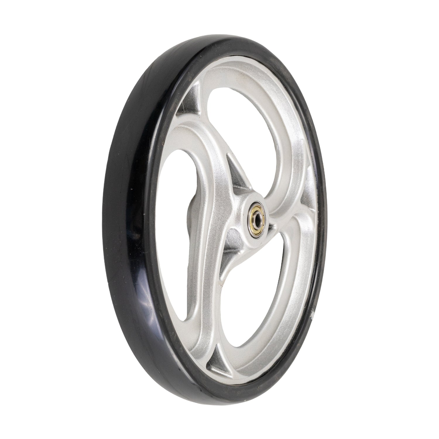 The 10" front wheel for the Drive Medical Nitro Rollator comes with pre-installed bearings and a 3-spoke rim.