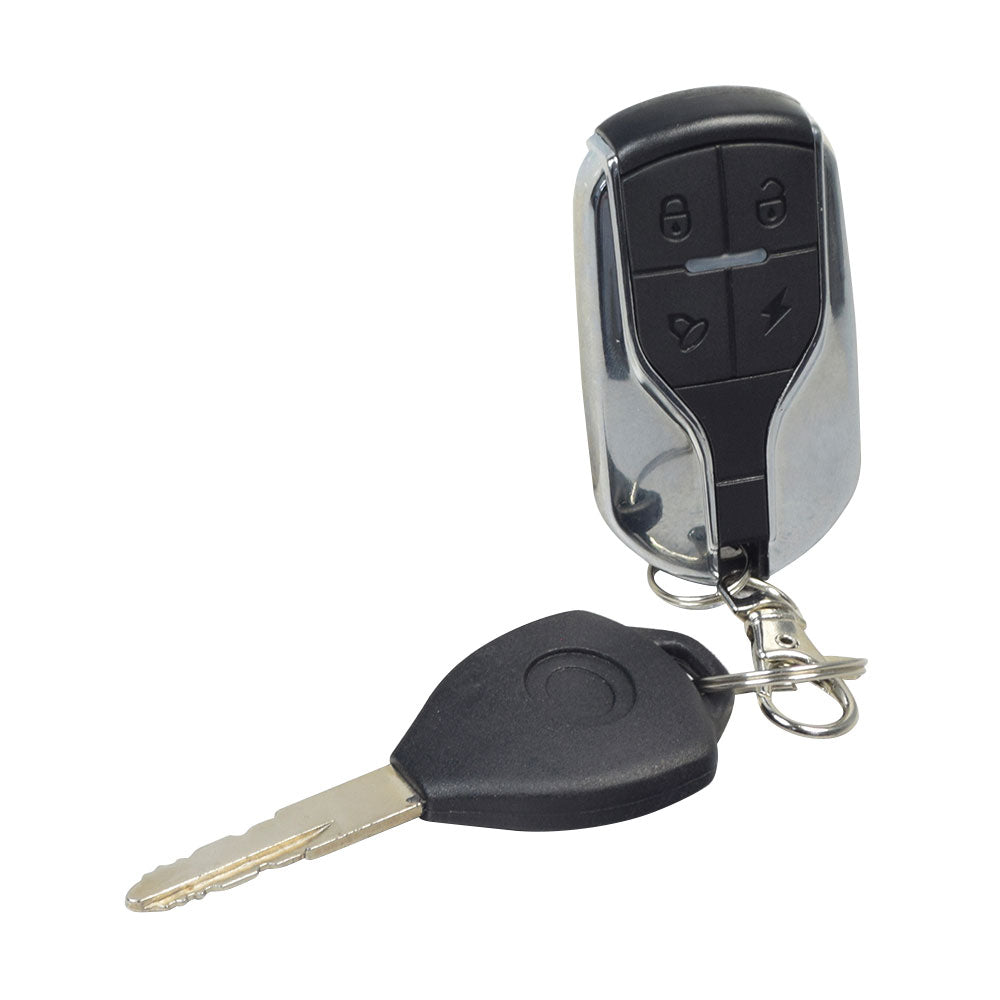 This key and electric fob for eWheels EW-36, EW-36 Elite, and EW-37 scooters and is a combination that allows you to unlock and start your scooter either manually or electrically. The fob uses four buttons that allows you to lock, unlock, or start the scooter. In addition, there is an alarm or "beeper" button.