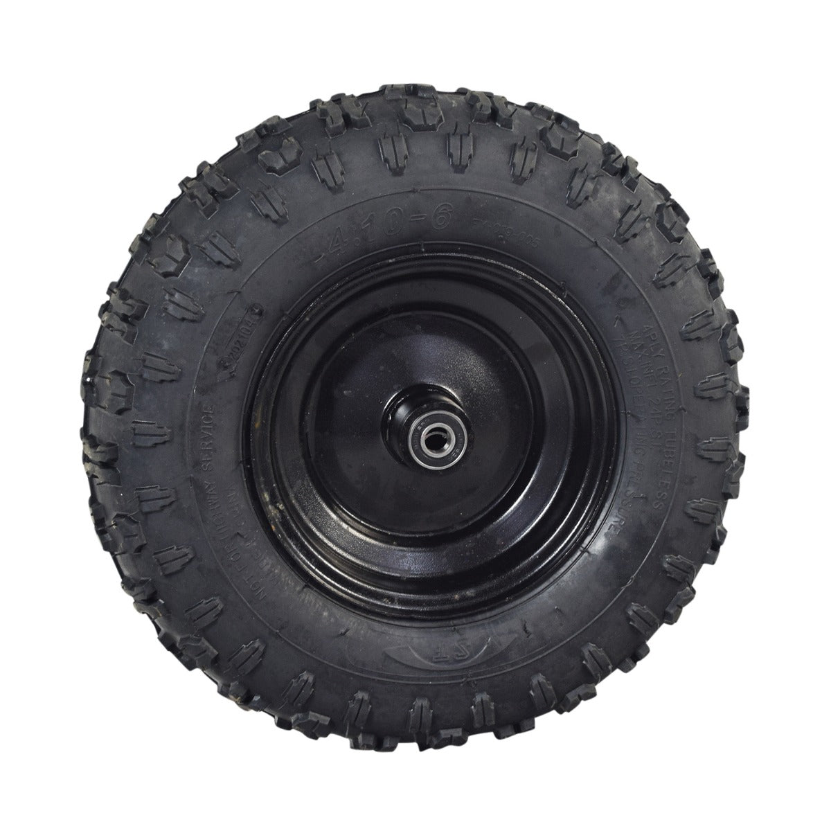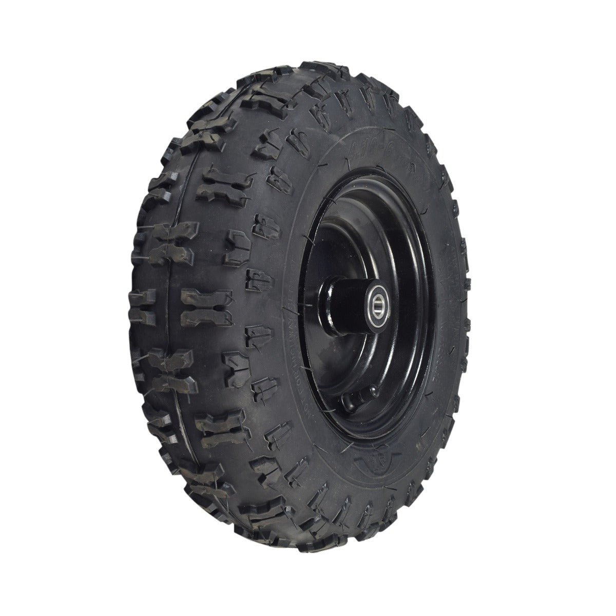 Get back out on the track with a new replacement front wheel assembly with a 19x7.00-8 tire for the Fit Right DB003 40cc 4-stroke mini bike. This assembly includes the whole shebang; the rim, tubeless pneumatic 4.10-6 knobby tread tire, bearings, valve, spacers, and other hardware to hold it all together.
