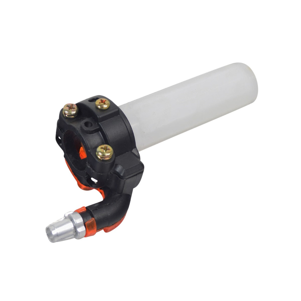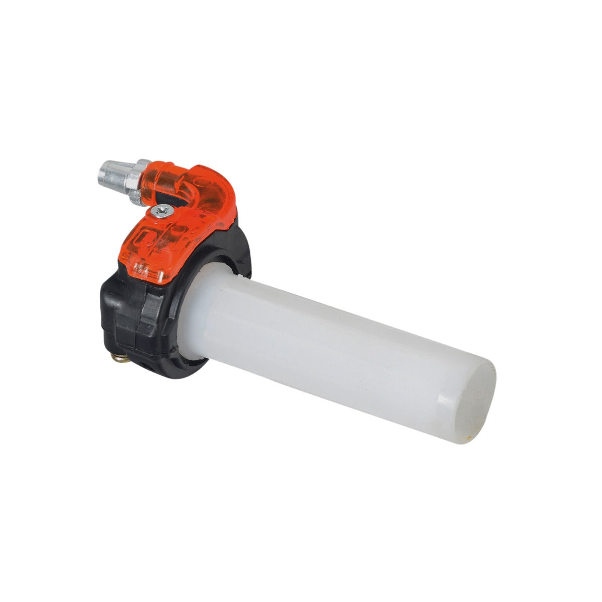 Here is the plastic throttle cable housing for the Fit Right DB003 40cc 4-stroke mini bike. The internal pulley feature of this housing allows a quick low friction twist that reduces wear on your mini bike's throttle cable. This features a universal fit that should work just fine on most any dirt bike or mini bike that uses standard 7/8" handlebars.