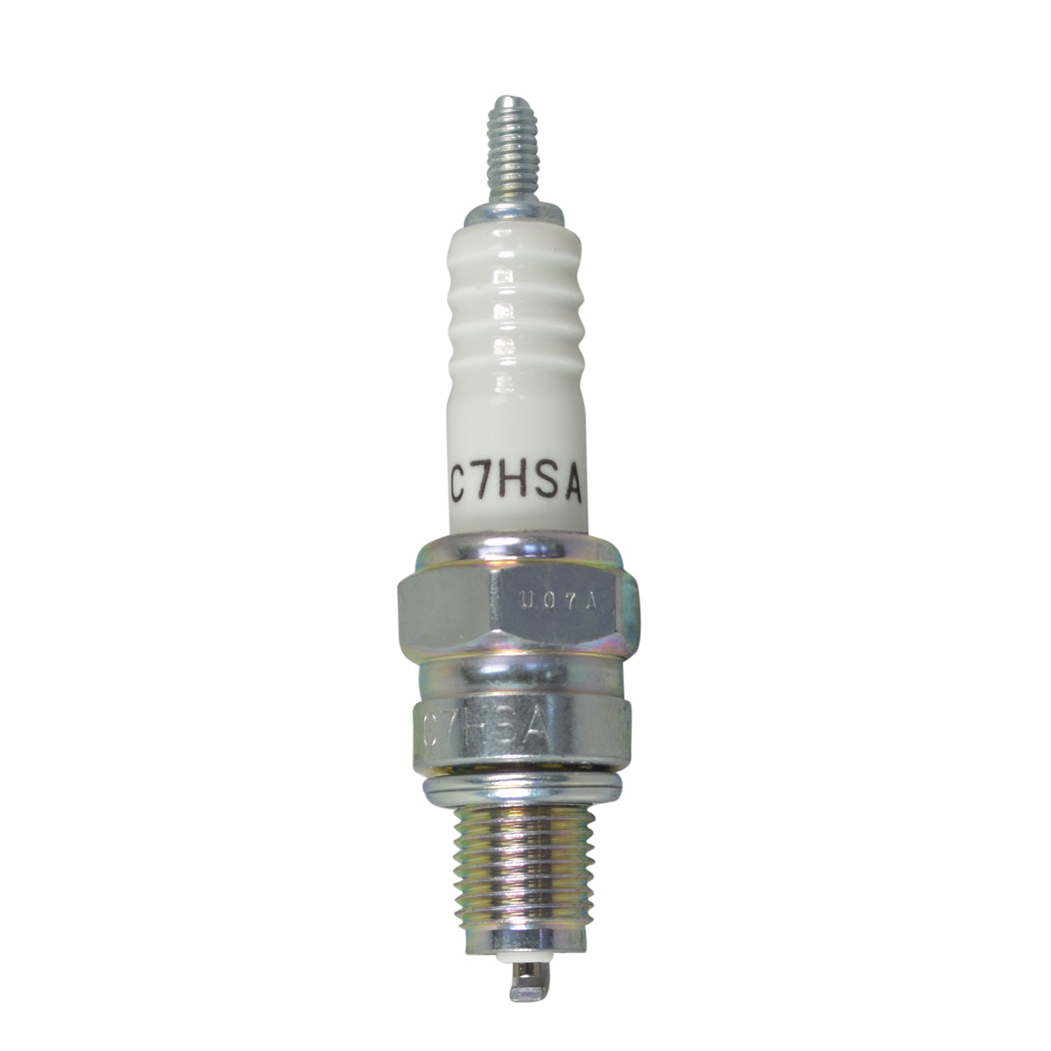 The NGK C7HSA spark plug is a non-resistor type, and it can be used on many full size scooter engines as well as many classic Honda scooters, motorcycles, and motorbikes. It may also be found providing the spark to a number of off-road go-karts that use the ubiquitous GY6 engine.
