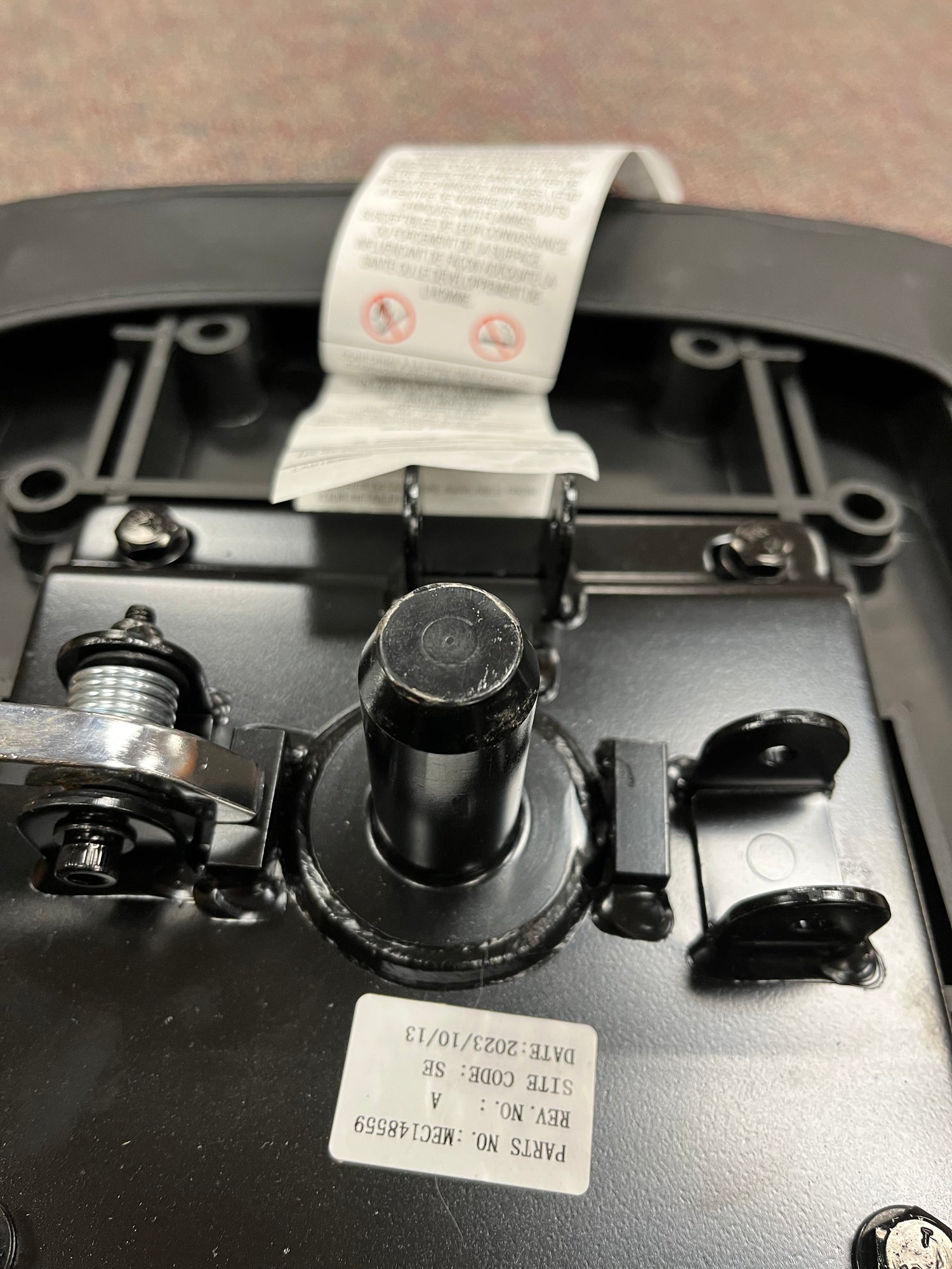 - Note: This item has a small tear on the front corner of the seat, a small dent on the front of the seat, and some minor scratches to the mounting post.