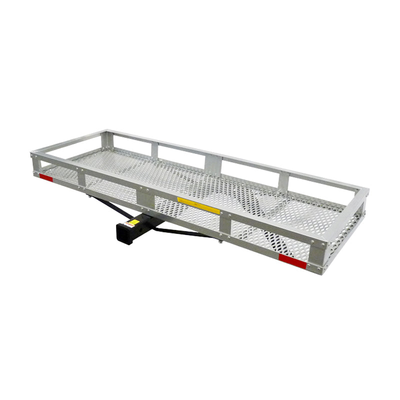 When you need more cargo capacity, our lightweight hitch mounted 60” x 20” aluminum cargo carrier with tow option will allow you to haul as much as 400 lbs. worth of just about anything that you can strap down on it. Not only is this very convenient cargo carrier a superb way to transport your stuff; it has the additional distinction of letting you tow another 3000 lbs. worth of trailer load behind the carrier on its built-in rear Class III (2") receiver hitch.