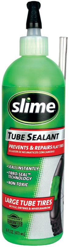 Slime Tube Sealant prevents and repairs flats caused by puncturing objects up to 1/8? (3mm). Slime’s non-toxic, non-flammable, non-aerosol and water soluble liquid installs into the tube by first removing the valve core and then applying through the valve stem. Slime works repeatedly to repair new and existing punctures and is guaranteed to perform for up to 2 years!