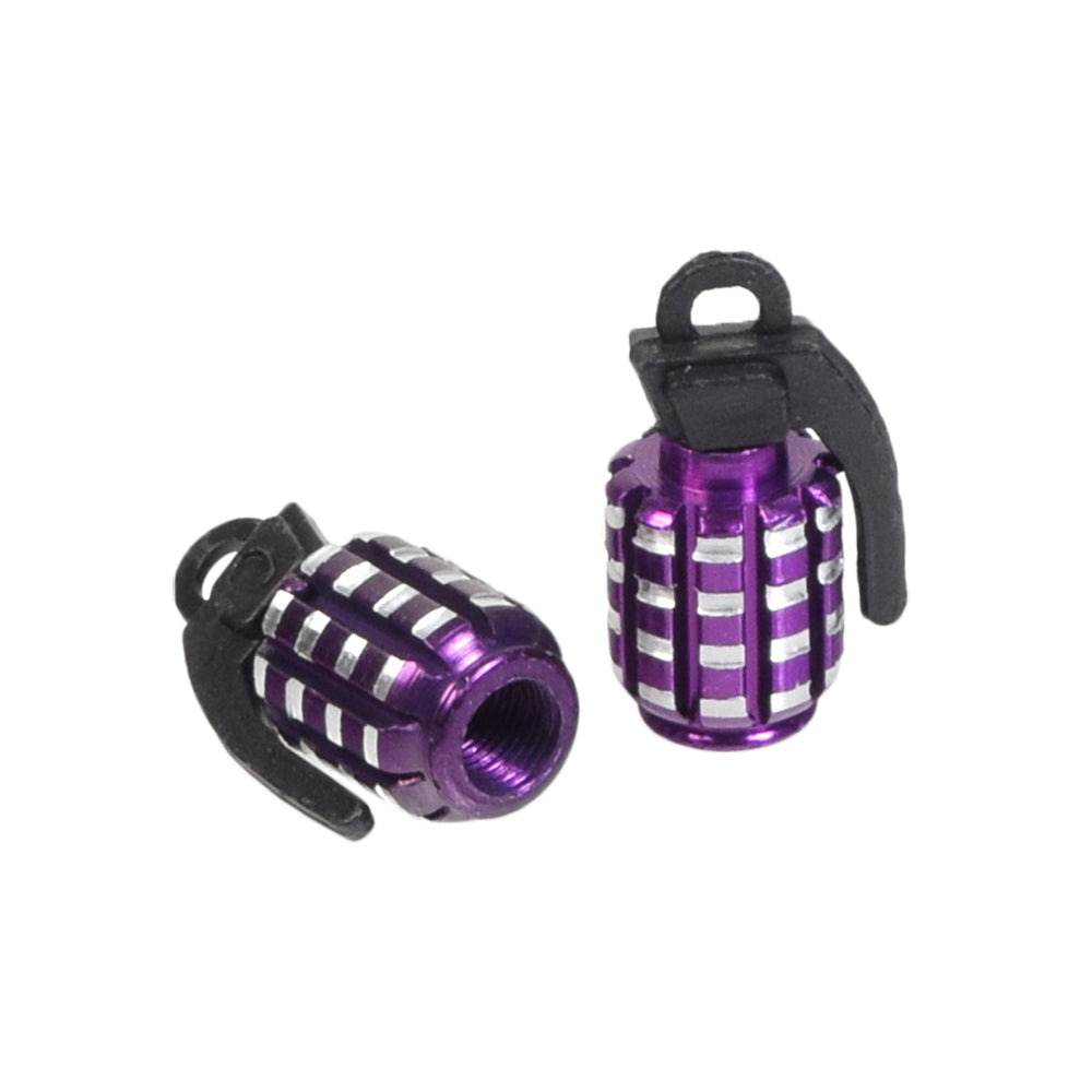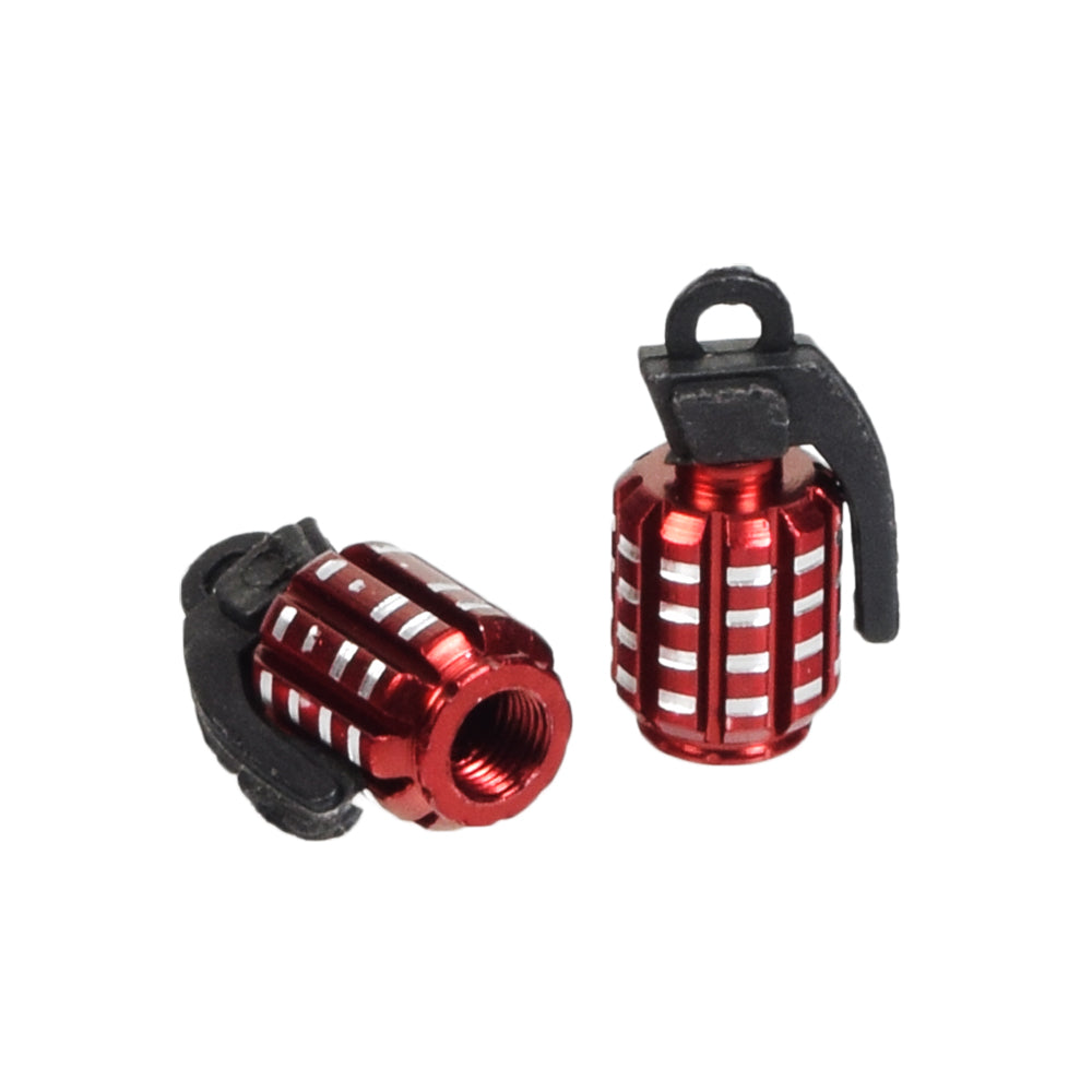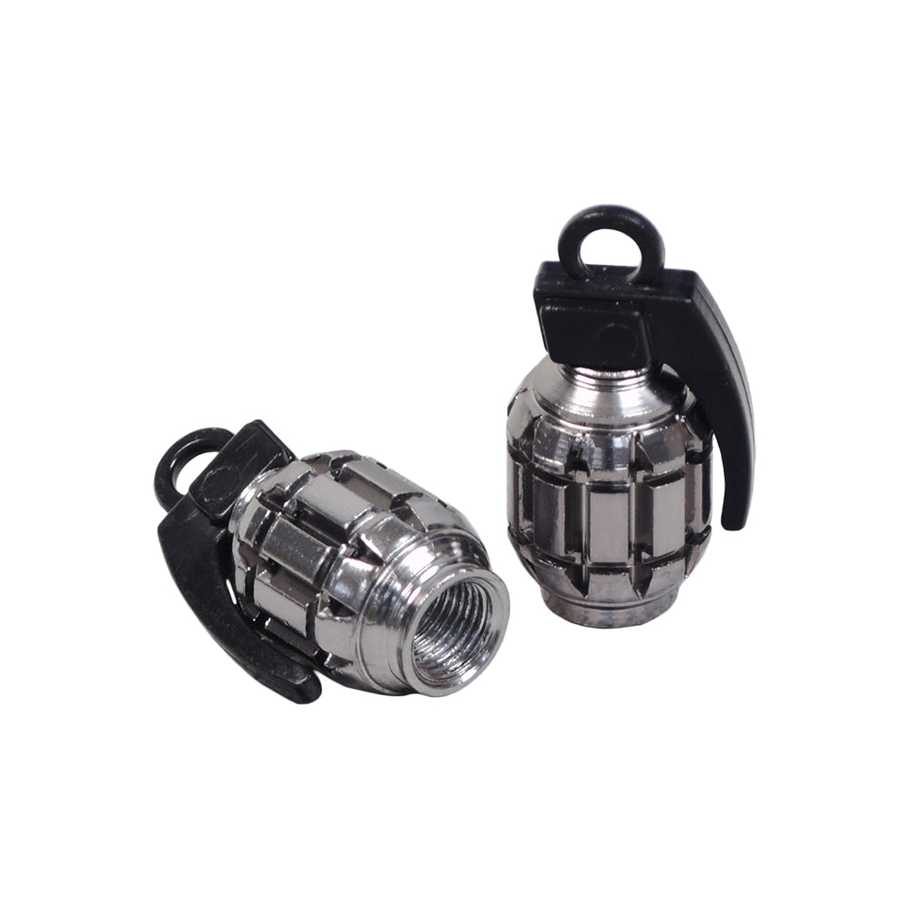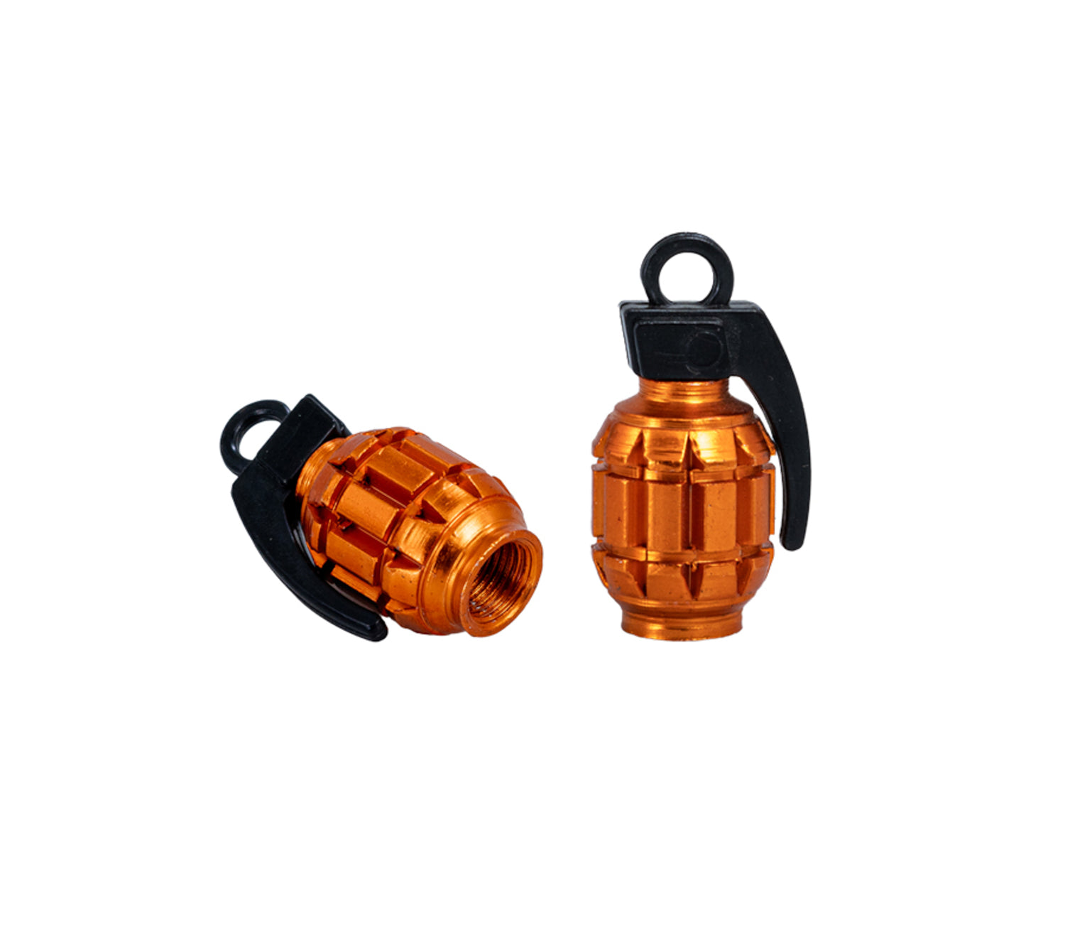 Now you can turn your bike or scooter into "Da Bomb" with a set of grenade valve stem caps. We offer several color options for these unique caps to fit over the Schrader valves in your inner tubes. A set of these novelty valve stem caps is a great way to add a dash of personal flair to your bike or scooter.