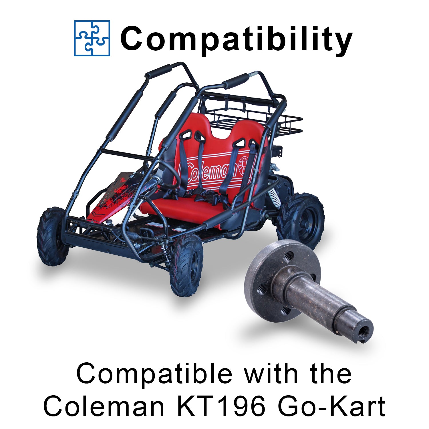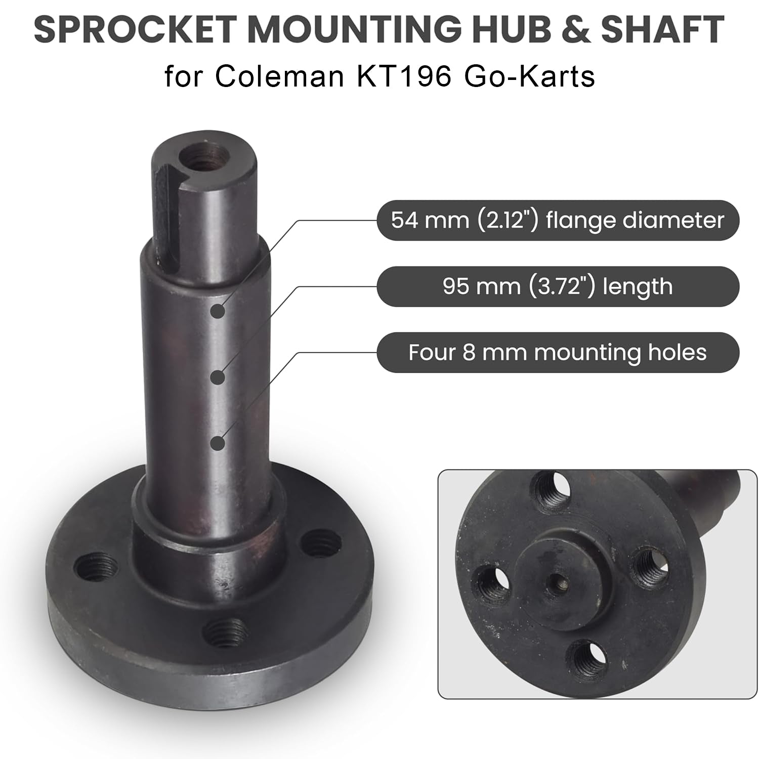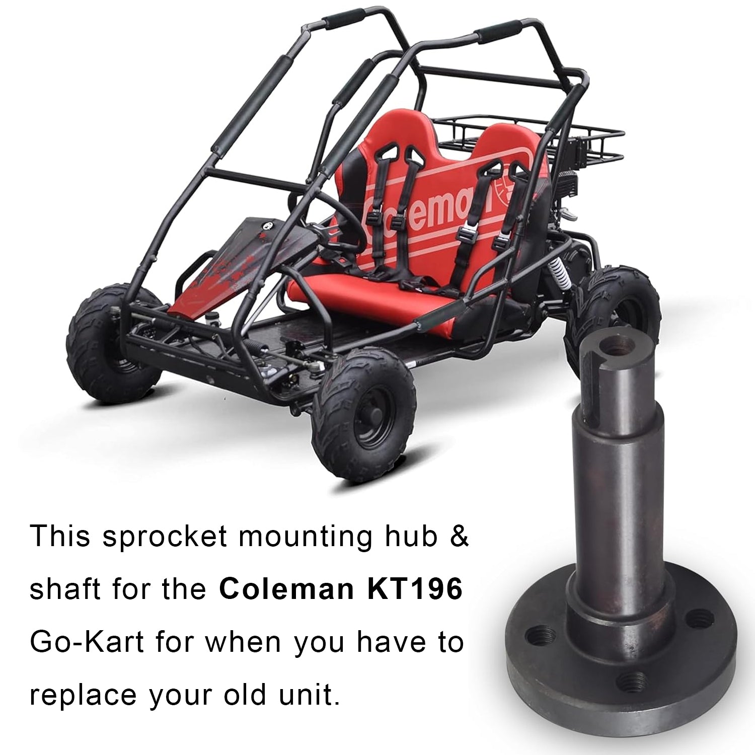 Here is the sprocket mounting hub & shaft for Coleman KT196 and CK196 go-karts that you want when you have to replace your old unit. Although made for the Coleman KT196 go-kart, the hub may be compatible with many brands and models of go-karts, but please refer to the photo and Specifications to determine if it is a good match for your machine.