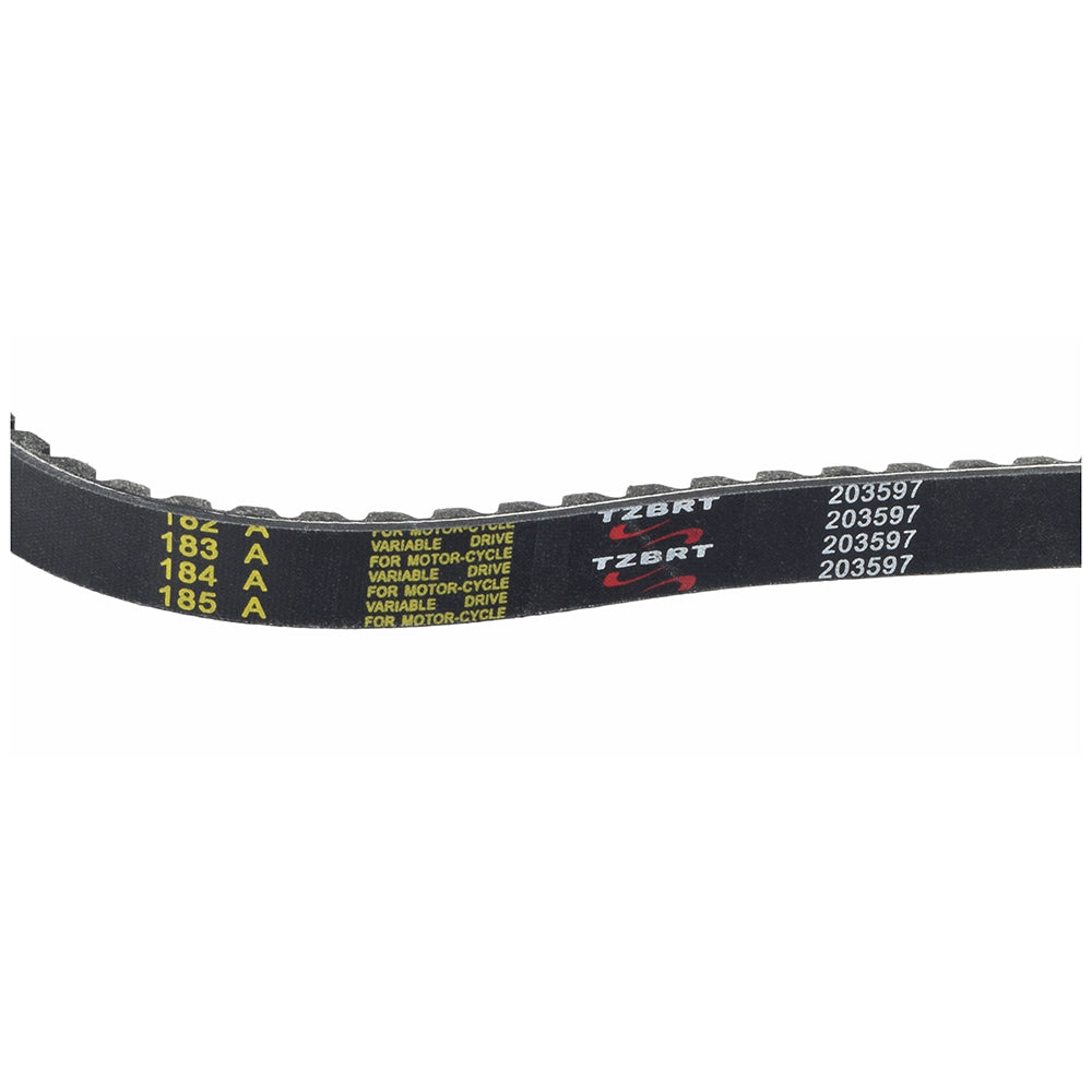 The replacement go-kart belt for Comet style torque converters replaces the belt numbers 37X98, 37X98MA, and 203597. This belt is asymmetric with a 3/4" wide top face, 18 degree angle on one side, 2.5 degree angle on the other side.