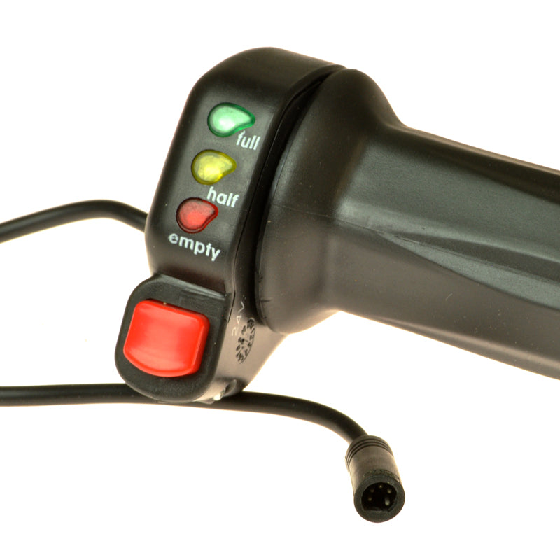 An excellent and high quality twist grip throttle for electric bike conversion kits from Golden Motor Technology is an essential part of any custom e-bike project. These throttles are the same as come with the Smart Pie and Magic Pie 3 electric bike conversion kits.